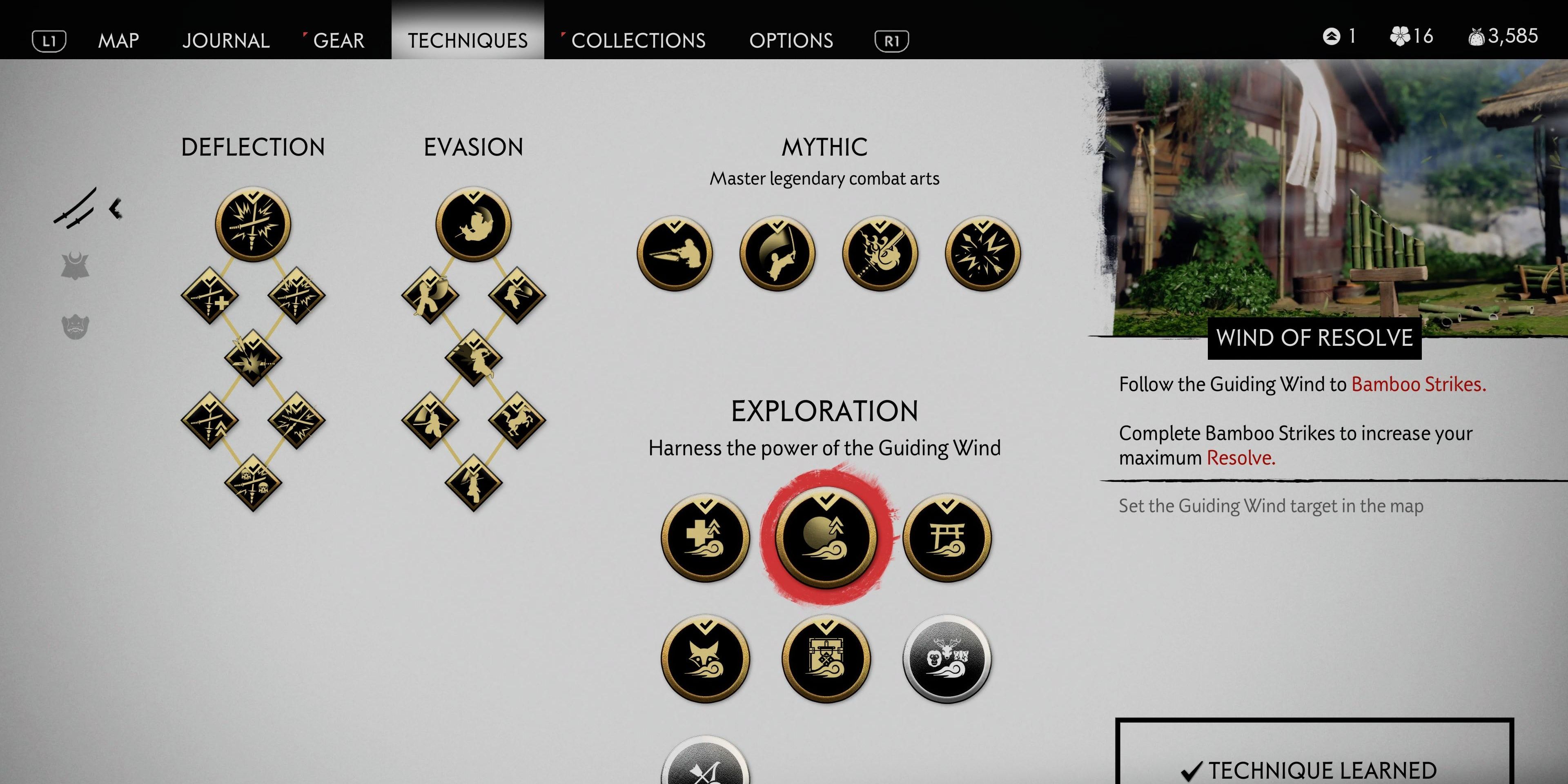 Изначально у игроков есть ограниченный запас из трех решений. Им желательно найти способы увеличить это число. К счастью, по всей Цусиме разбросано множество Бамбуковых ударов. Игроки могут получить значительную награду, обыскивая остров в поисках этих находок, не привязываясь к следованию за Желтыми певчими птицами, которые появляются в небе в качестве их проводников.