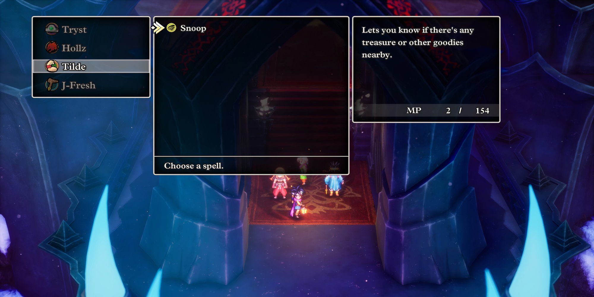 По мере своего развития воры могут освоить два типа способностей по поиску сокровищ. Снуп — более поздний вариант, который может показать, есть ли в какой-либо области сокровища. Нос сокровищ точно так же вынюхивает сокровища, но в более слабом смысле. Если игроки знают, что есть сокровища, которые можно разграбить, они могут потратить дополнительное время на исследование. В противном случае прогулка по определенным областям подземелья может быть напрасной тратой, особенно потому, что Dragon Quest 3 HD-2D Remake по-прежнему использует случайные встречи в качестве механики ролевой игры старой школы.