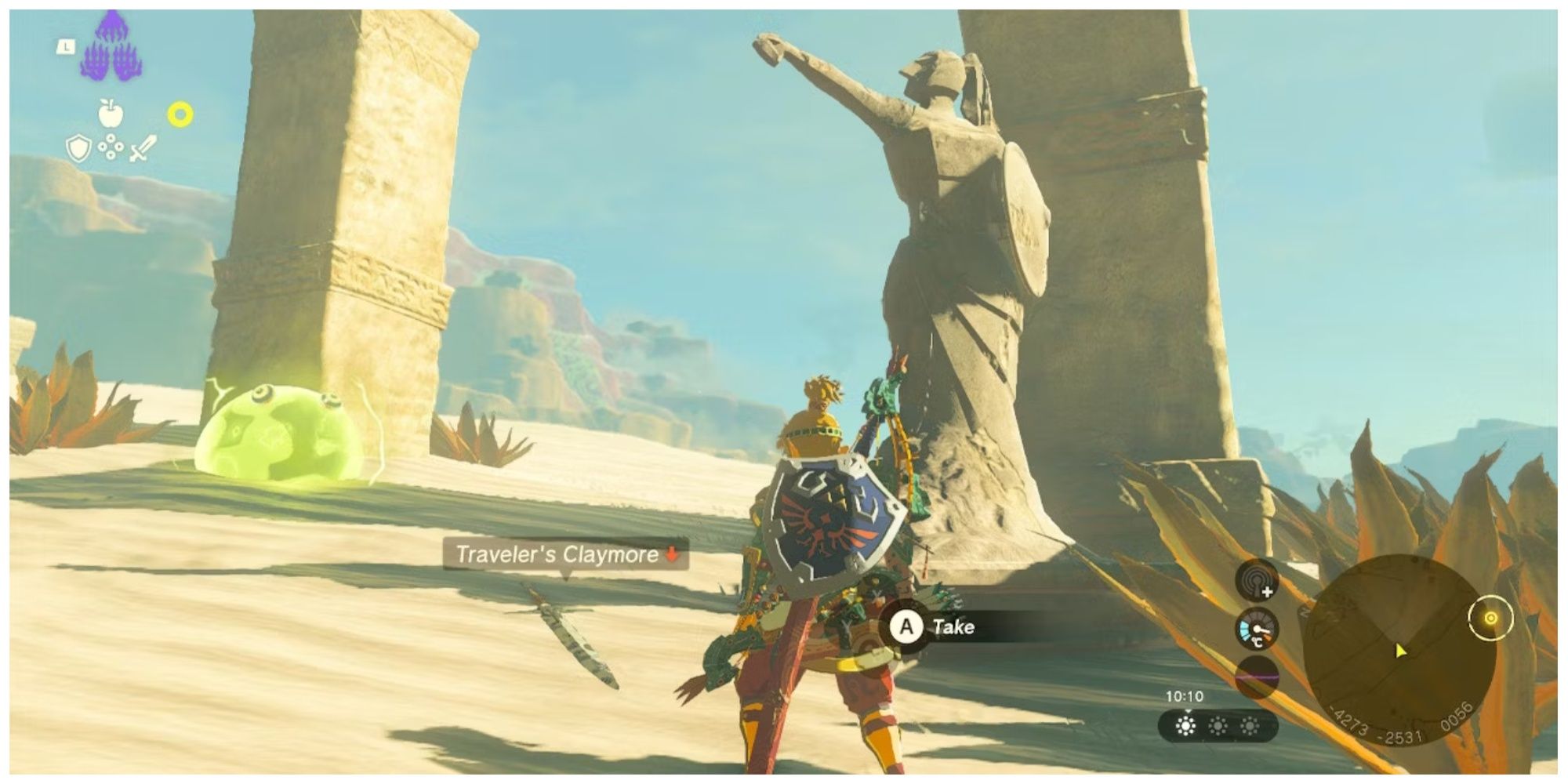 Как преданный фанат, я бы описал это так: «Дюны Герудо» таят в себе бесчисленные чудеса и испытания для Линка. Здесь он столкнется с запутанными лабиринтами и тайными возможностями проникновения, спрятанными в зыбучих песках.