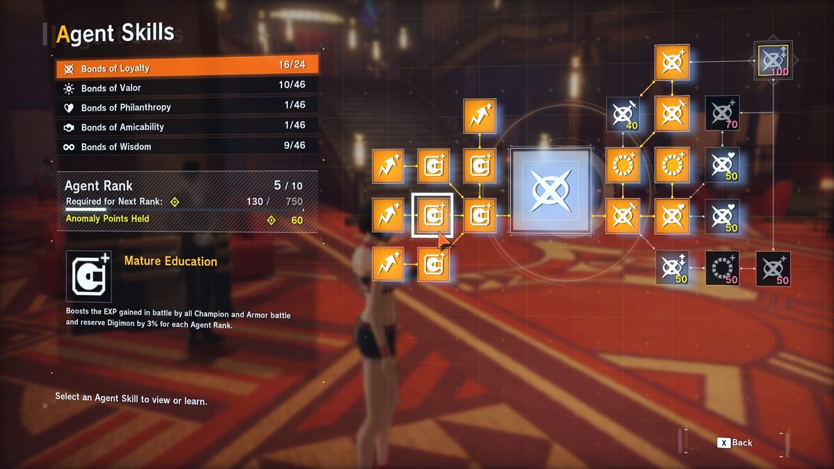 После того, как вы приобретете эти узлы, вы сможете полностью максимизировать навыки Агента для повышения уровня Дигимонов. Затем вы можете посвятить свои оставшиеся навыки улучшению повышения характеристик для определенных типов личности, помогая вам достичь желаемых Дигиволюций.
