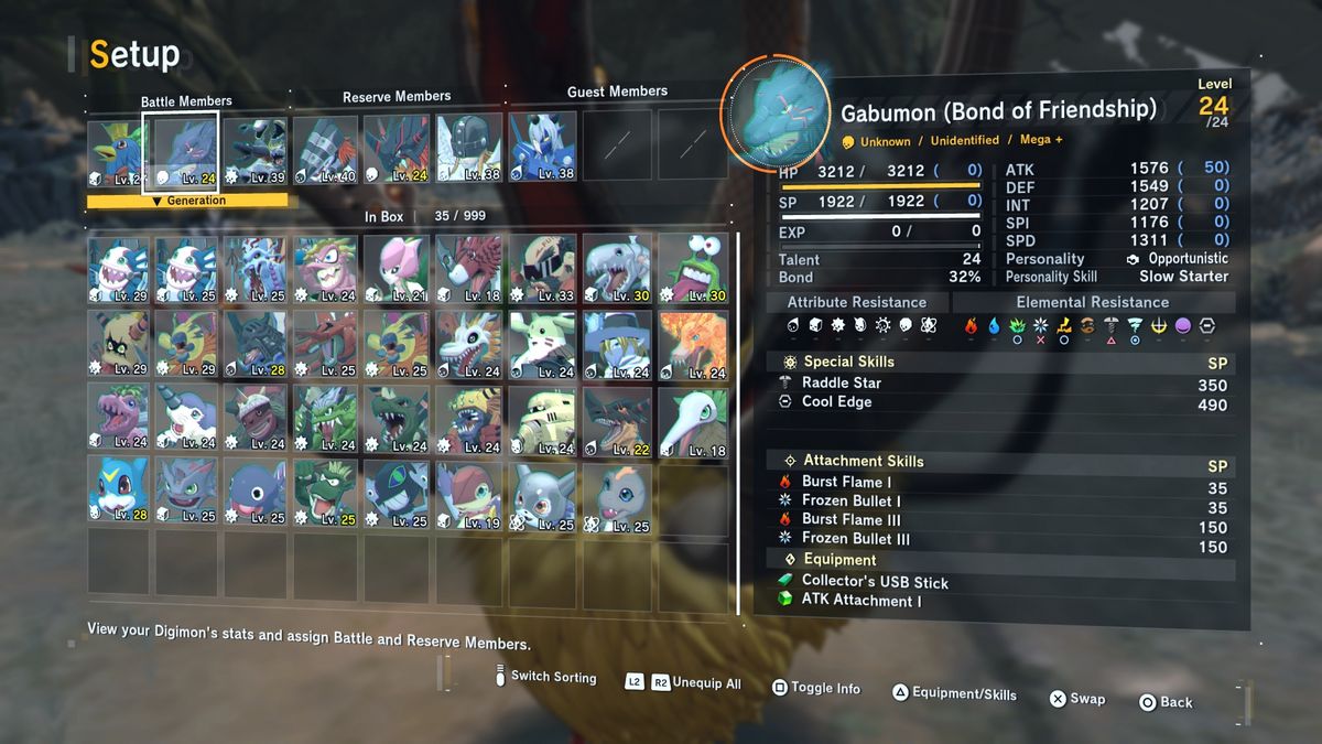 Давайте сначала рассмотрим, как работает система опыта, прежде чем говорить о лучшем подходе. В вашей команде Digimon вы найдете Digimon, разделенных на Battle Members, Reserve Members, Guest Members, и тех, кто в данный момент «In Box».