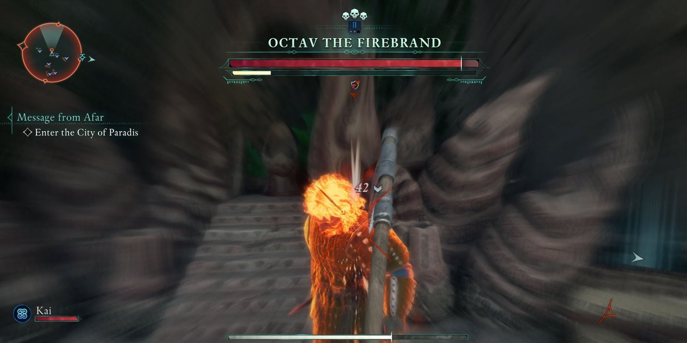 - Прыжок атака: Octav будет прыгать в воздух и одновременно нанести удар по игрокам оба кинжала, нанося значительный ущерб и вероятность эффекта статуса ожога.