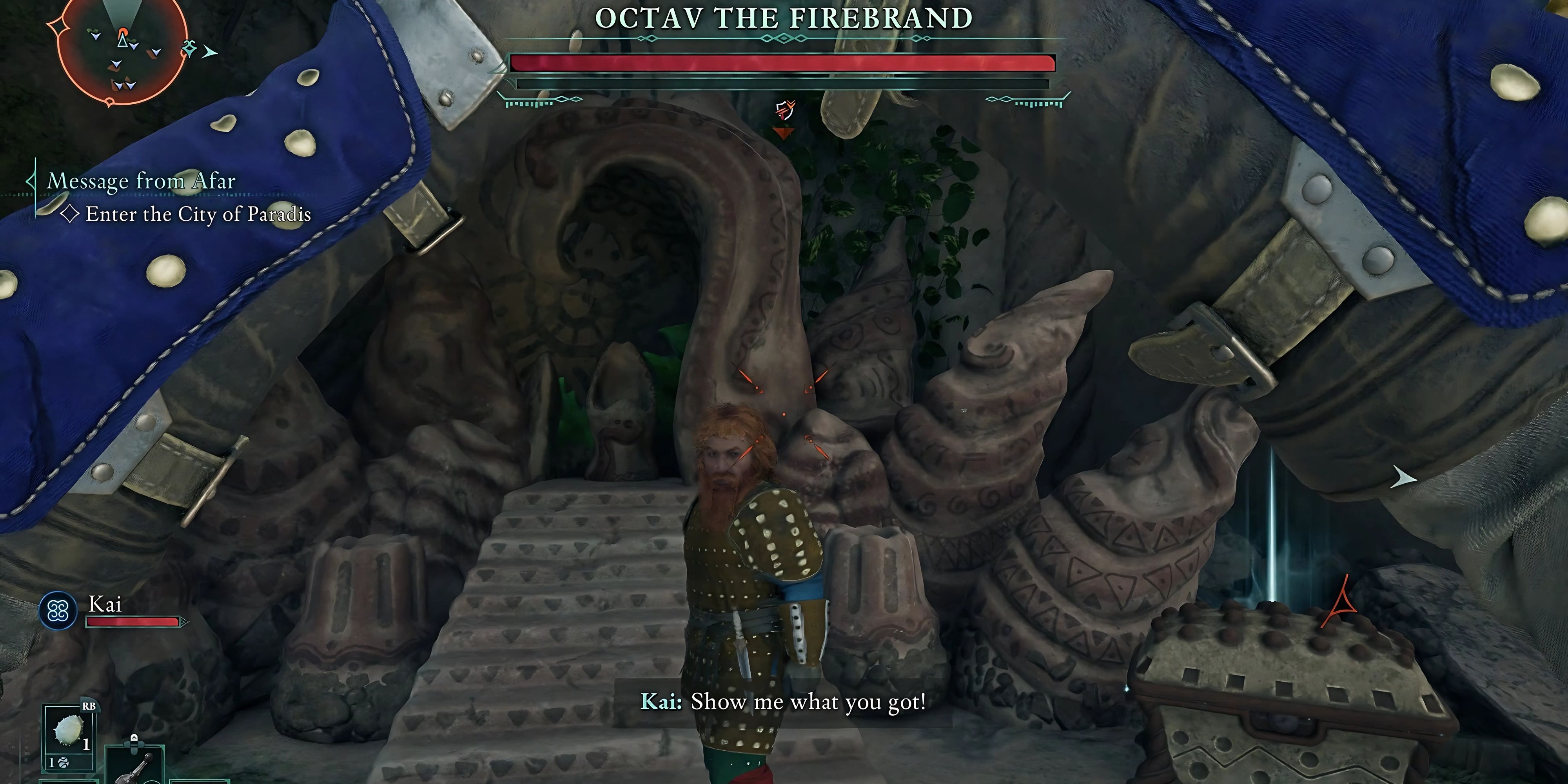 Когда вы попадаете в зону, вы заметите группу воинов -карв во главе с Октавом, стратегически расположенной среди безбожных руин. Вместо того, чтобы противостоять им в лоб, попытайтесь проскользнуть мимо этих противников и нанести мощный удар прямо в Октав. Как только враги будут заняты, ваши союзники зайдут, чтобы защитить вашу спину.