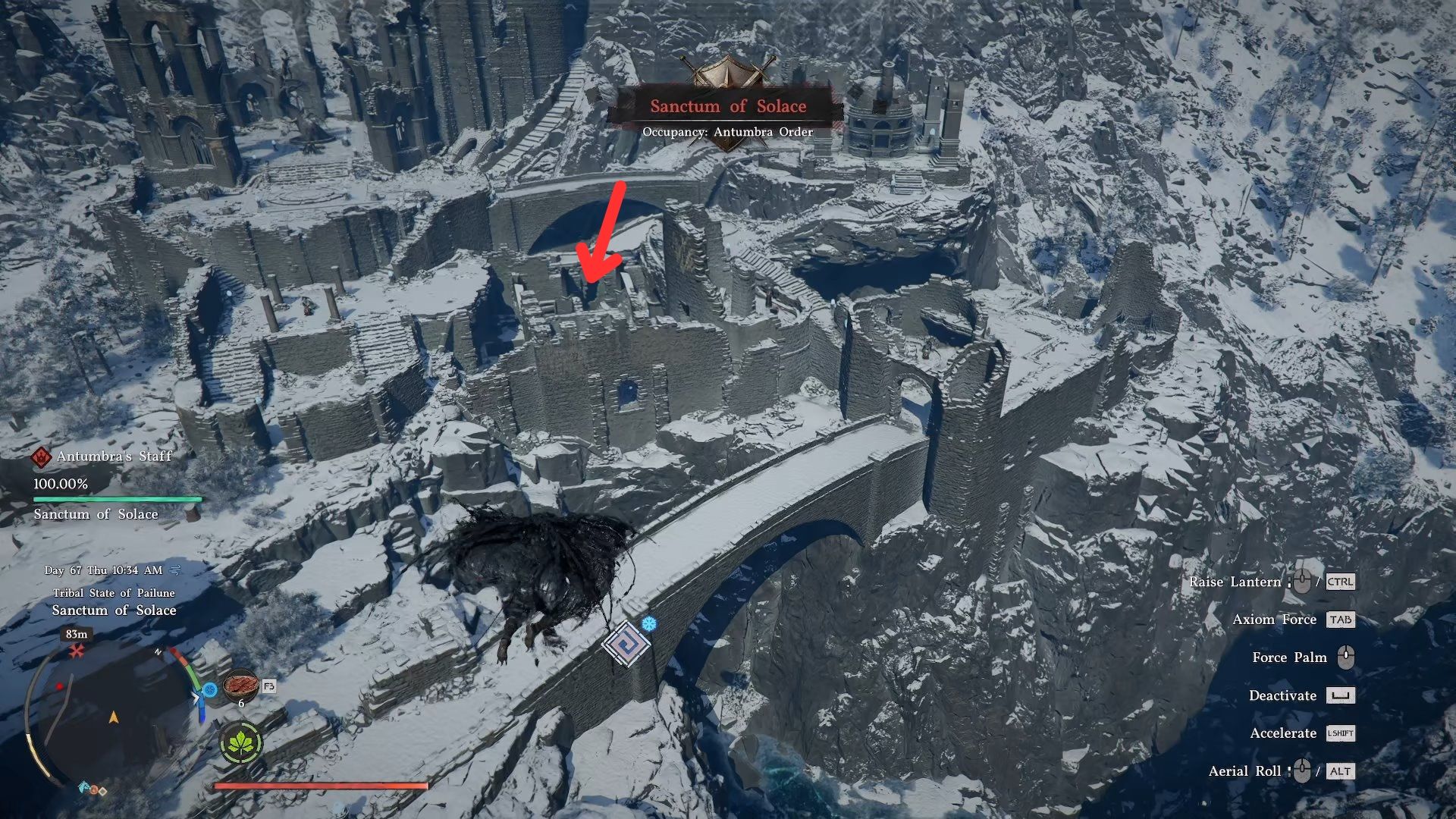 Once you’re near the Sanctum, jump and use the Focus Palm ability three times to gain some height and get a bird’s eye view of the location.
