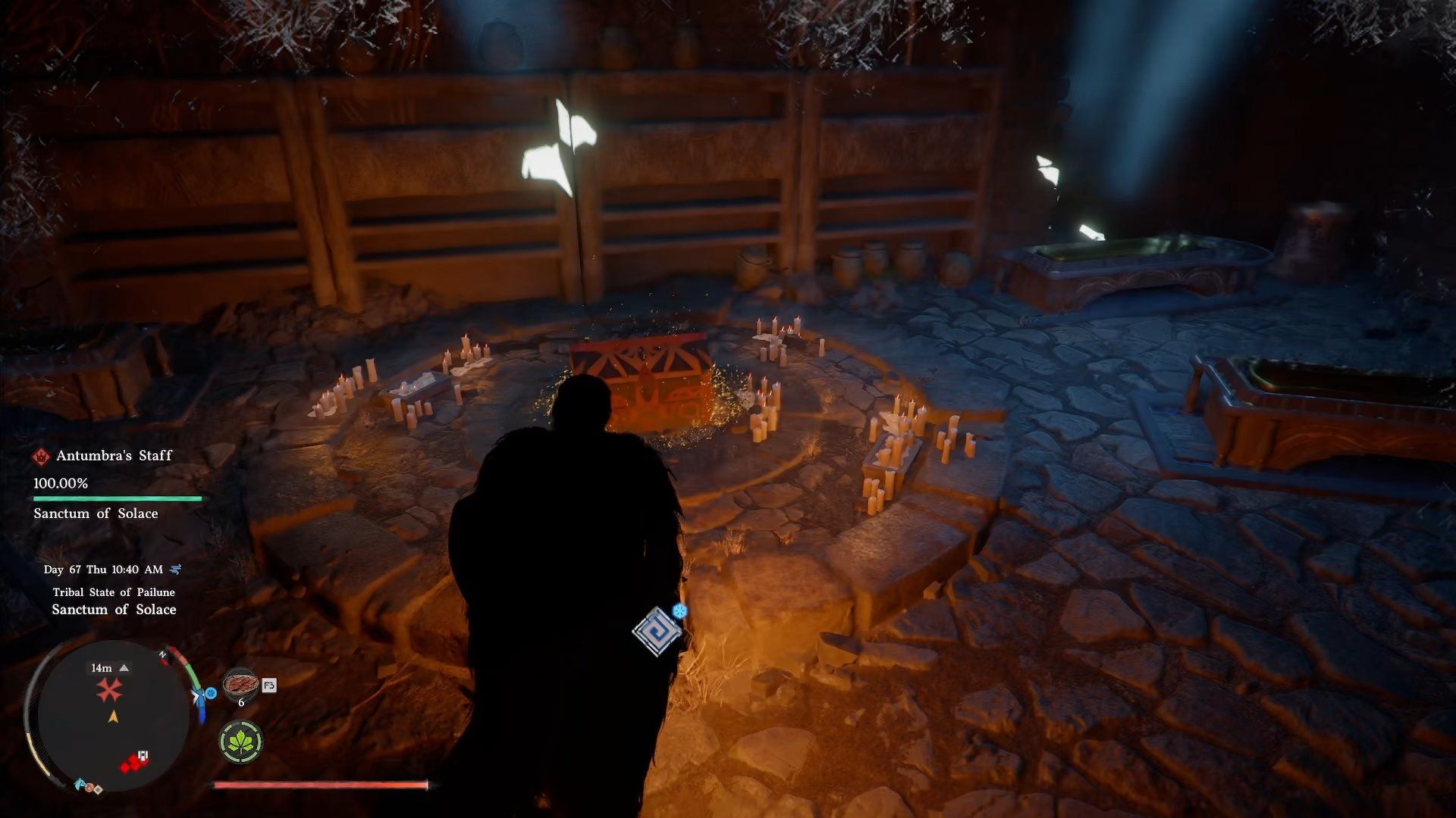 Если вы не закончили Sanctum of Solace, не заходите в круглую арену в центре — это начнет битву с боссом. Держитесь подальше, если вы не готовы к бою!