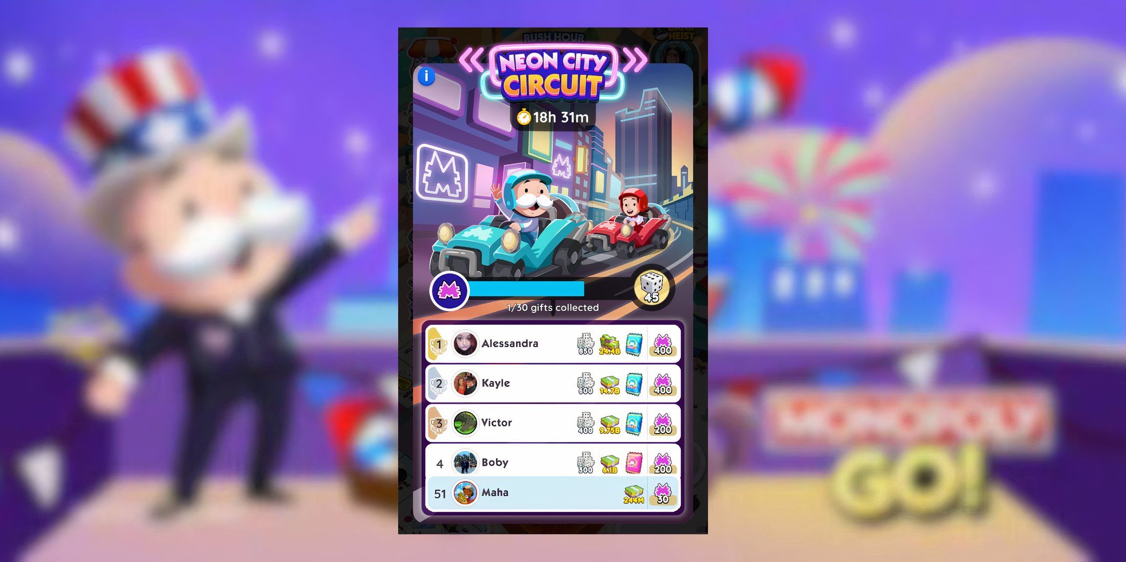 Бесплатный телеграм-каналКак восторженный фанат, я рад сообщить, что после завершения турнира Desert Drift Monopoly GO запустила новое увлекательное соревнование — Neon City Circuit! Отметьте в своем календаре 3 августа, поскольку это волнующее событие продлится всего один день.