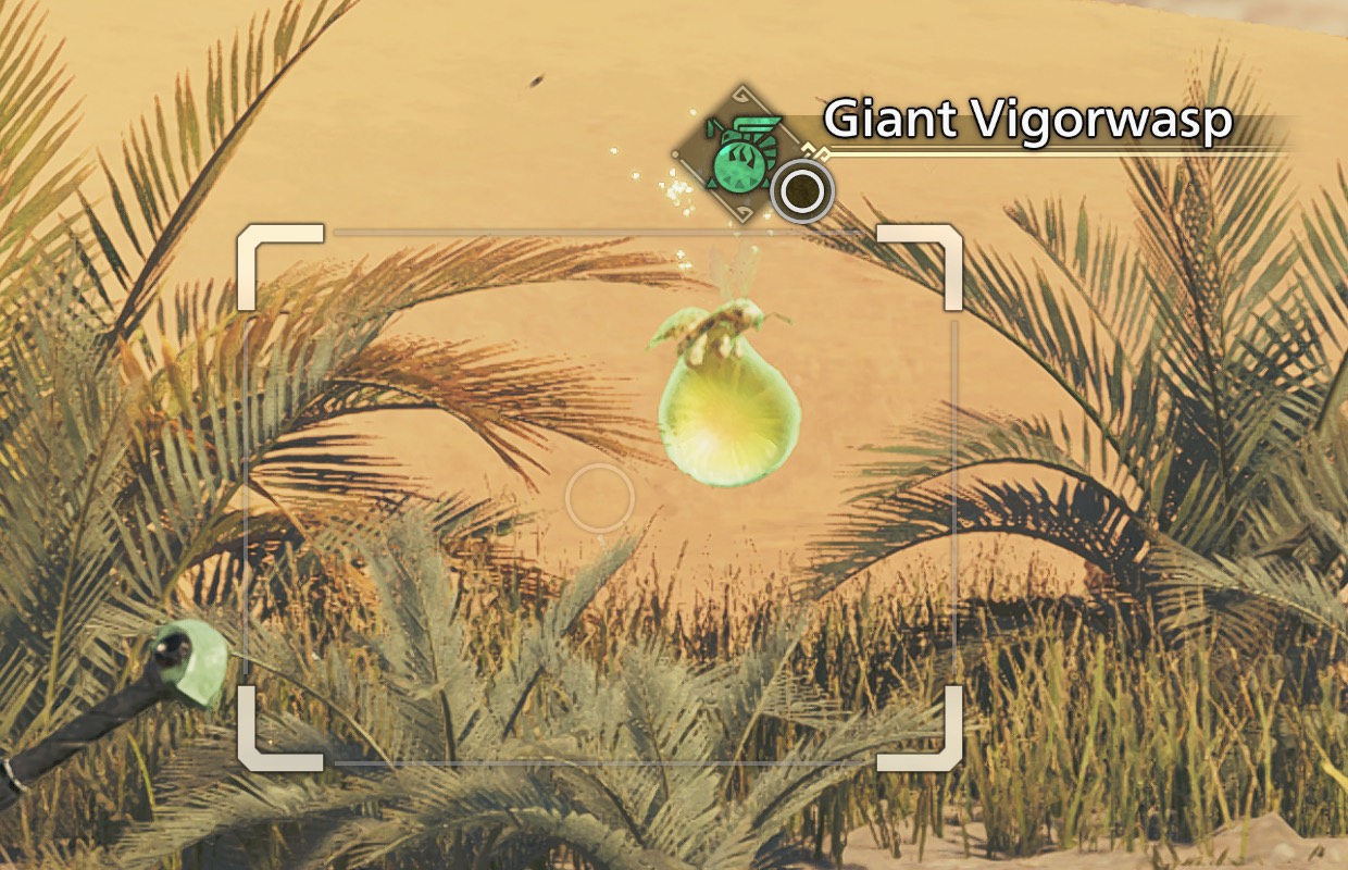 В районе Windward Plains ’13, в Oasis, если вы столкнетесь с колоссальной энергией, ваш палико или Альма может отметить это, но, несмотря ни на что, вы можете подготовить сетку захвата и подойти к ней. Отрегулируйте сеть захвата левым триггером, а затем нажмите правый триггер, когда прямоугольная сетка меняет цвет, как только гигантский VigorWasp находится в вашем руке.