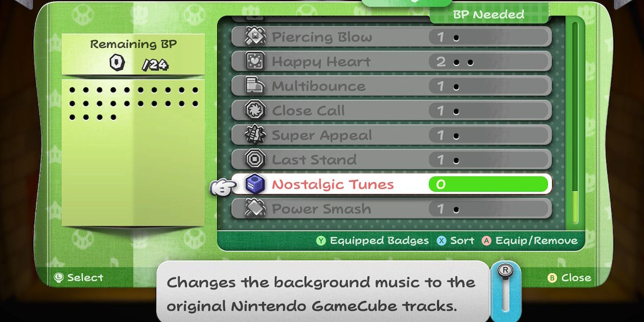 В версии TTYD для Switch компания Intelligent Systems представила значок «Ностальгические мелодии» как ответ на полностью переработанный саундтрек в римейке. Хотя новый саундтрек отличается исключительным качеством и включает в себя дополнительные песни для усиления боевого и эмоционального воздействия, эта функция позволяет игрокам настраивать свой игровой процесс. Включив различные саундтреки с помощью простой активации значка, фанаты могут легко выбирать, что они хотят слушать, исходя из своих предпочтений или текущей ситуации в игре.