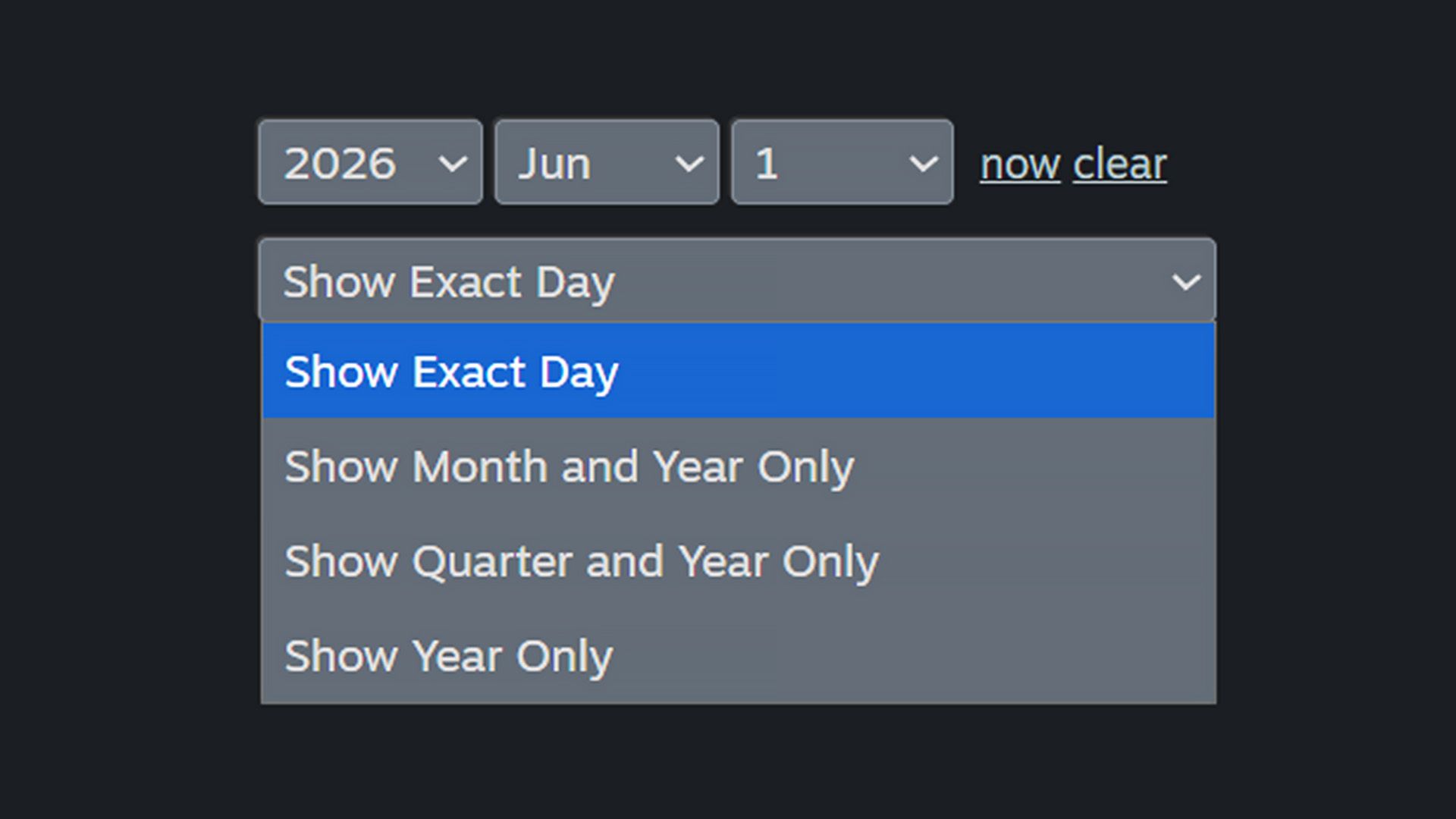 Мы продолжаем работать над улучшением Steam и надеемся, что вам понравится эта новая функция. Мы также планируем добавить поддержку более точных дат выхода в будущем. Если вы разработчик, вы можете найти более подробную информацию об этих новых параметрах здесь.