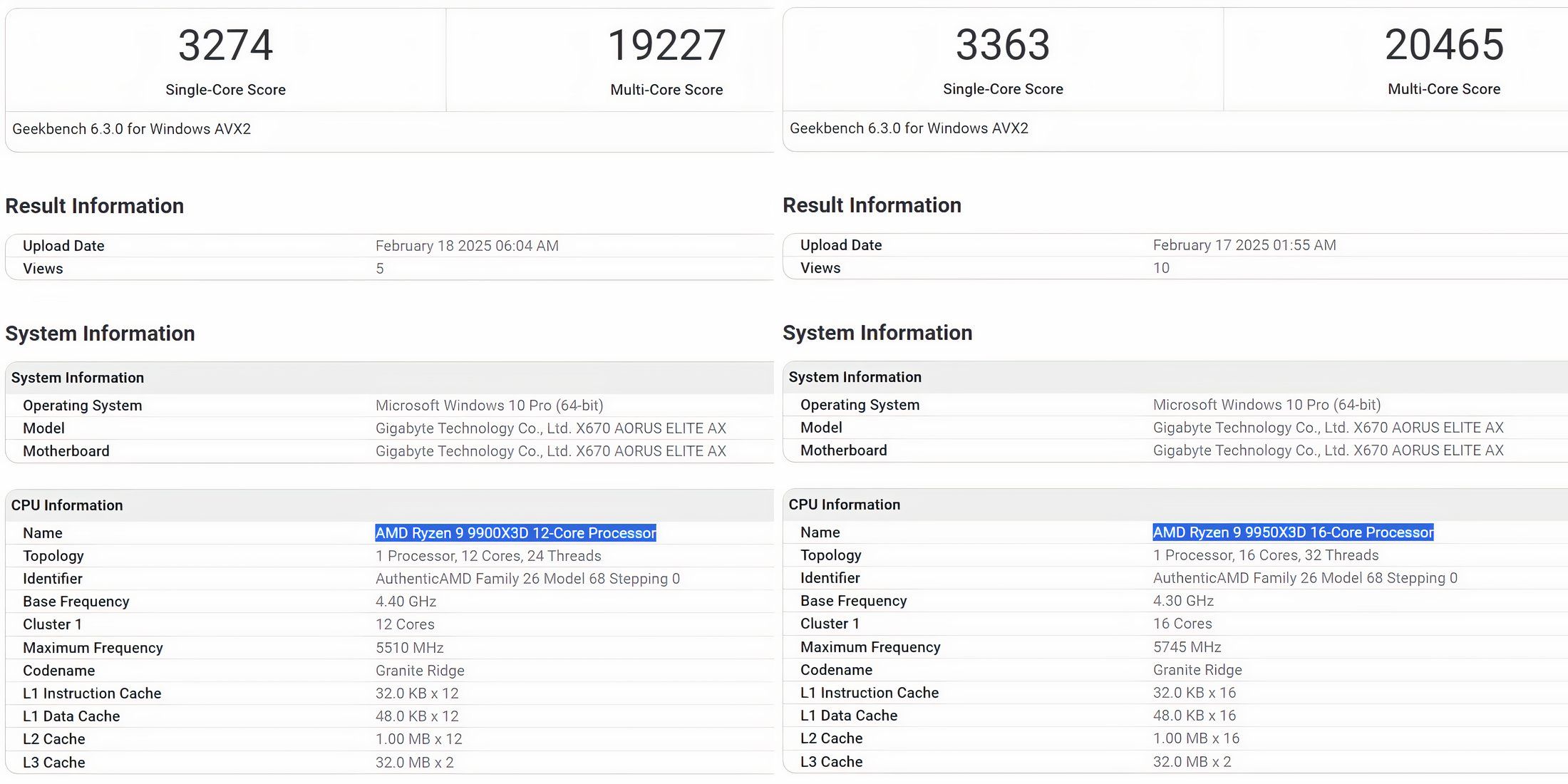 Результаты работы AMD Ryzen 9 9900X3D и Ryzen 9 9950X3D на Geekbench: Впечатляющий рост производительности IPC