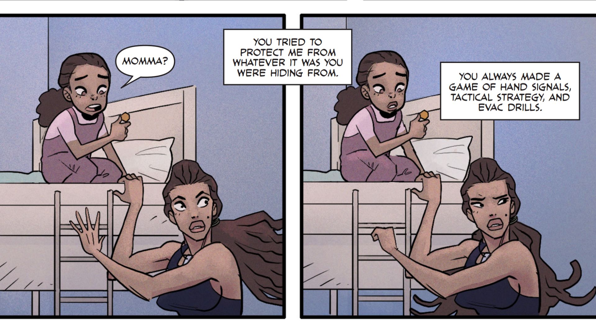 Сьерра присоединяется к миру Overwatch с 2 сезоном 14 апреля. Перед её прибытием Blizzard раскрыла её прошлое в комиксе ‘New Heights’. Сьерра воспитывалась своей матерью, Кендрой Вудс, которая тренировала её с помощью интенсивных упражнений и тренировок, замаскированных под игры. В конце концов, Сьерра обнаружила, что это были вовсе не игры – её мать на самом деле скрывалась от правительства, и они постоянно переезжали, чтобы оставаться в безопасности. Двенадцать лет до текущих событий в Overwatch, Кендра таинственным образом исчезла.
