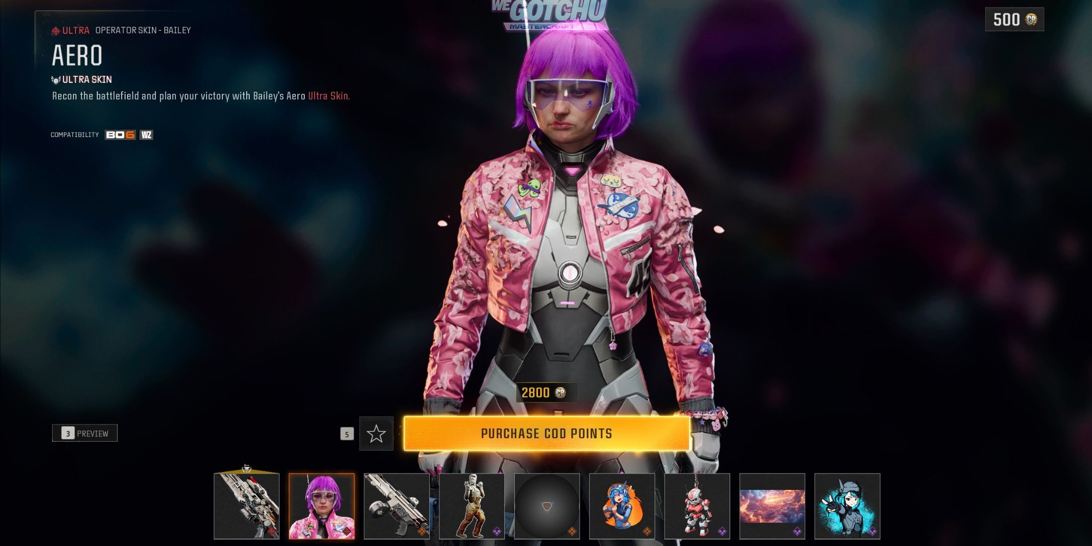 • В комплект Otaku We Gotchu входит ярко-розовый скин оператора, два чертежа оружия и множество других косметических предметов.