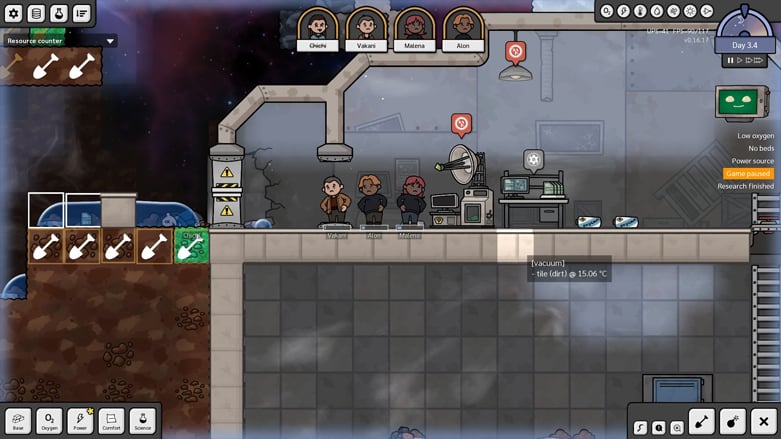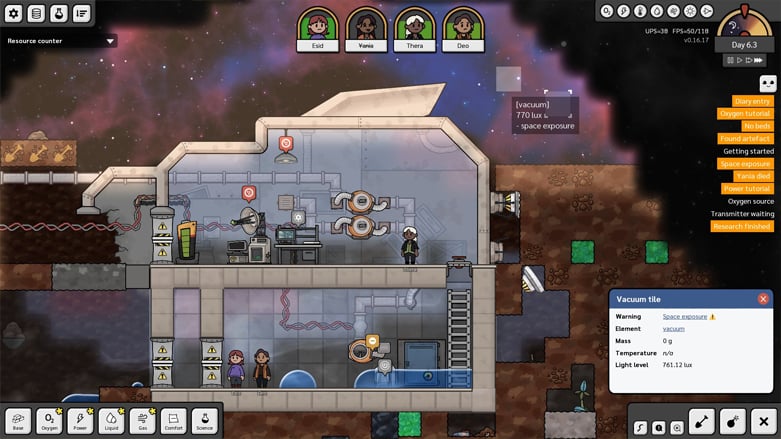 Самая большая проблема в том, что колонисты не запрограммированы заботиться о собственном выживании, или же программирование просто работает некорректно. И без того было сложно научиться поддерживать базу в безопасности, но мне также постоянно приходилось присматривать за моими колонистами, которые с радостью делали перерывы или засыпали в смертельно опасных, ядовитых зонах. Я перестал считать, сколько раз я отворачивался на секунду, только чтобы обнаружить, что все мертвы, потому что они решили вздремнуть в космосе или стоять в облаке углекислого газа, когда безопасный воздушный карман был всего в нескольких шагах.