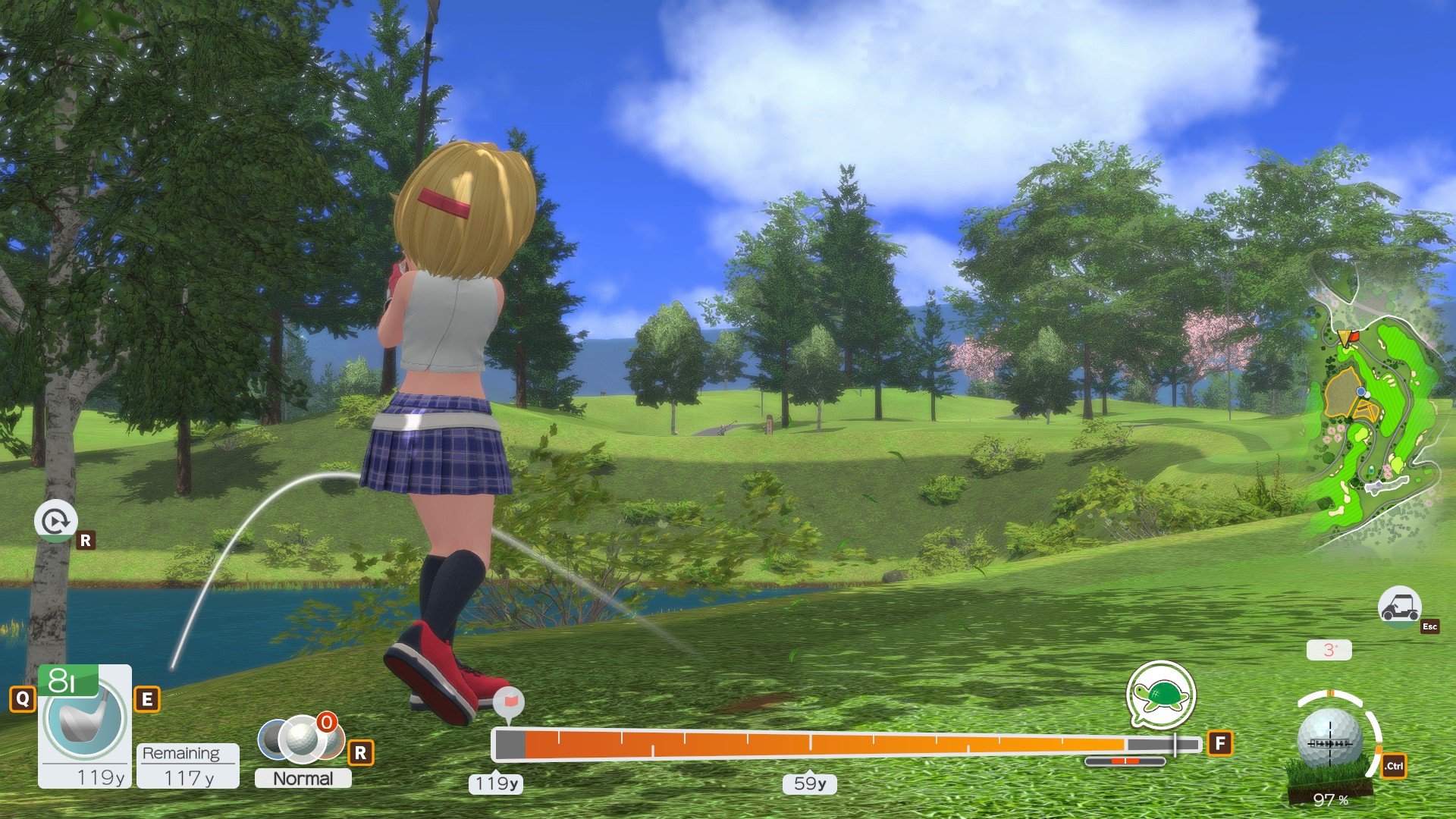 В игре мне понравился разнообразный состав персонажей, однако Everyone’s Golf: Hot Shots не прилагает больших усилий, чтобы эти персонажи казались отчетливыми личностями со своими характерами. Развитие персонажа происходит в основном через сюжетный режим игры, и за пределами анимации и нескольких повторяющихся фраз существует ограниченное количество способов узнать о вашем персонаже. К сожалению, повторяющиеся реплики могут довольно быстро стать раздражающими.
