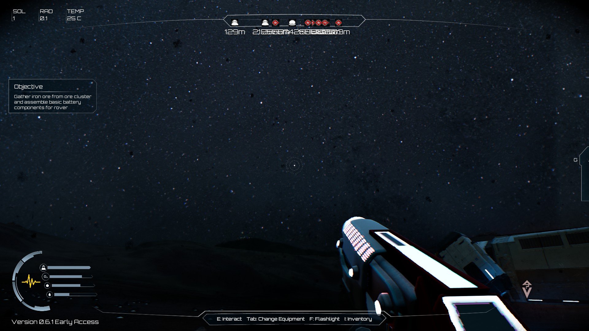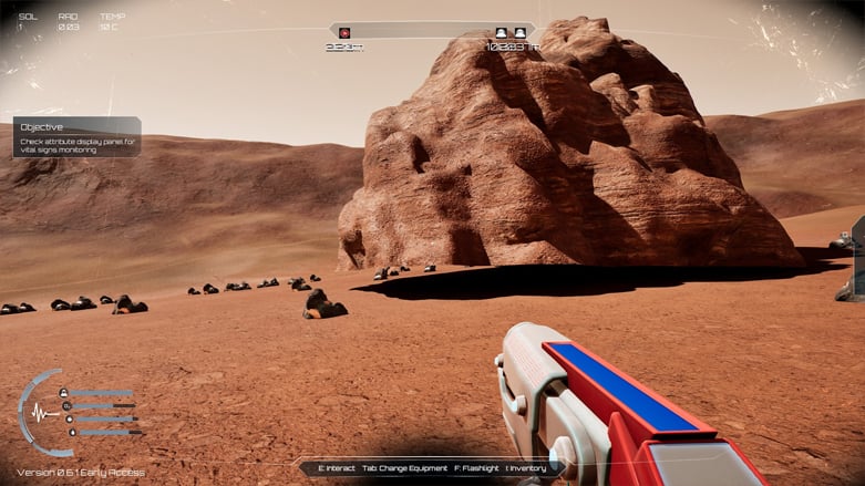 Помимо значительных ошибок, игра наполнена мелкими раздражающими моментами. Например, ровер удивительно медленный, особенно при движении в гору. Погодные эффекты чисто визуальные – они просто внезапно появляются, подобно тому, как быстро день сменяется ночью. Игра также не всегда предупреждает сразу, когда заканчивается кислород, хотя чёткое предупреждение появляется за пару минут до этого. Каждая руда в окружении ярко выделяется на экране, и эти ресурсы разбросаны случайным образом, а не концентрируются в определенных областях, чтобы стимулировать исследование. Я также столкнулся с неприятным глюком, из-за которого я не мог подобрать или выбросить предметы, быстро заполняя свой инвентарь бесполезным хламом.