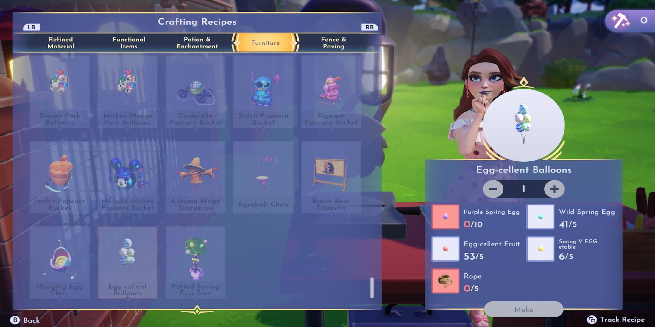 В течение переходных периодов между разными сезонами игроки в Disney Dreamlight Valley могут заниматься торговлей с другими игроками. Эти сделки могут быть использованы для производства различных предметов. Сбирая яйца, рецепты для создания этих предметов автоматически станут доступными для игрока. После того, как рецепты разблокированы, игроки могут производить предметы, используя столик для крафта и впоследствии украшать свой остров, чтобы отпраздновать Пасху.