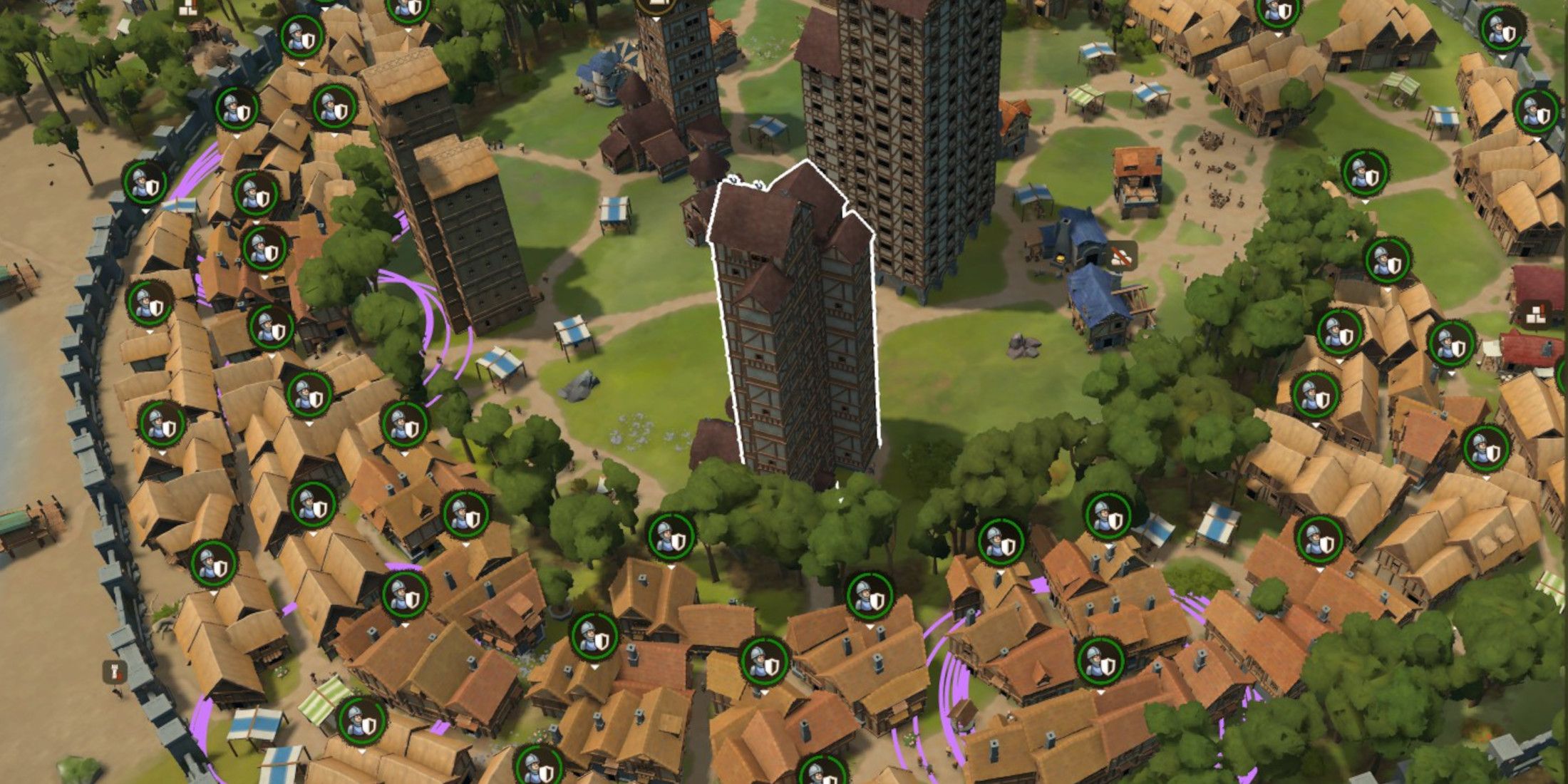 В этой игре о градостроительстве для начинающих такие сооружения, как усадьбы, деревенские рынки и аналогичные здания, могут занять значительную часть городской территории, если игроки решат строить их горизонтально, а не вертикально. Для сооружений, рассчитанных на большую численность населения, таких как церкви, усадьбы со сторожевыми башнями и городские рынки, при закладке фундамента игроки заметят стрелки, которые они могут перемещать либо вверх, либо наружу на определенных зданиях.