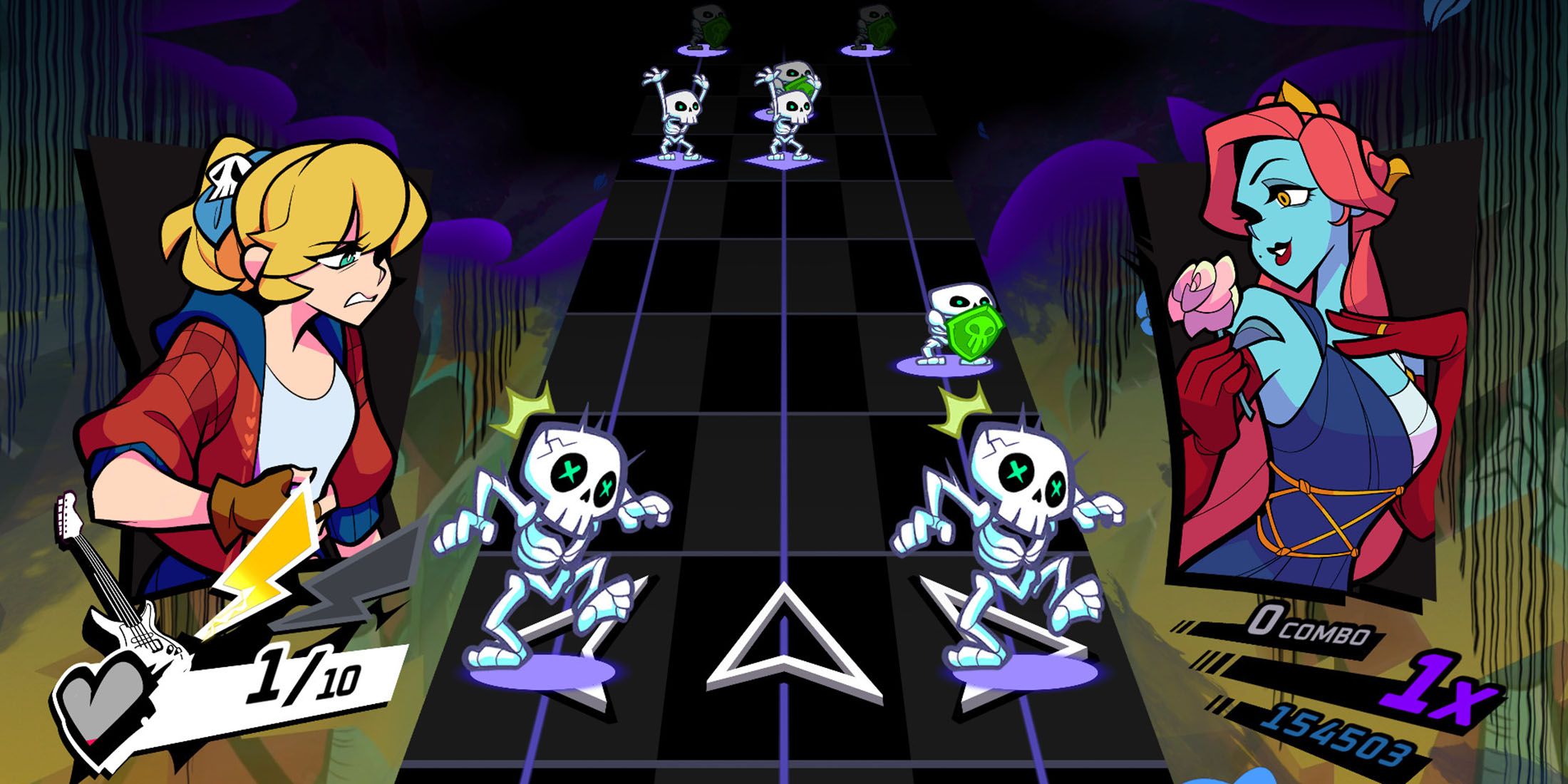 В одной из самых ярких мелодий из «Rift of the NecroDancer» происходит взрыв, наполненный металлом, в сочетании с рядом скелетов в щитах — эти монстры символизируют дуплет нот. Эти скелеты усиливаются синхронно с мощными гитарными ударами, создавая электризующую атмосферу. Кроме того, целый ряд монстров может подчеркнуть особенно впечатляющий бит в песне. Умная интеграция этих монстров в «Rift of the NecroDancer» выделяет ее как исключительную ритмическую игру, где игра ощущается как дирижирование инструментом во время исследования подземелья.