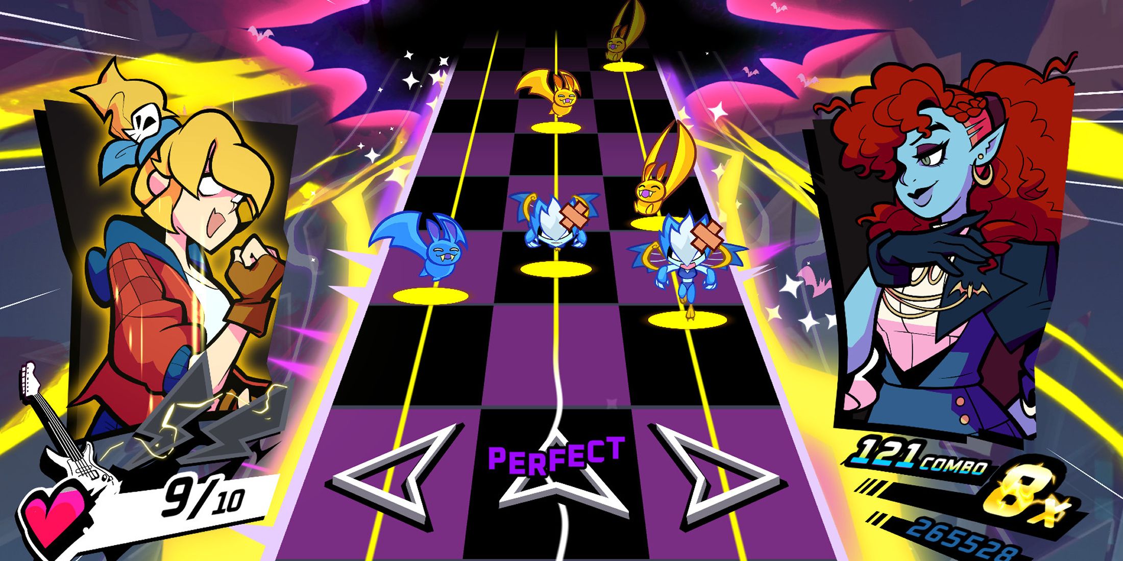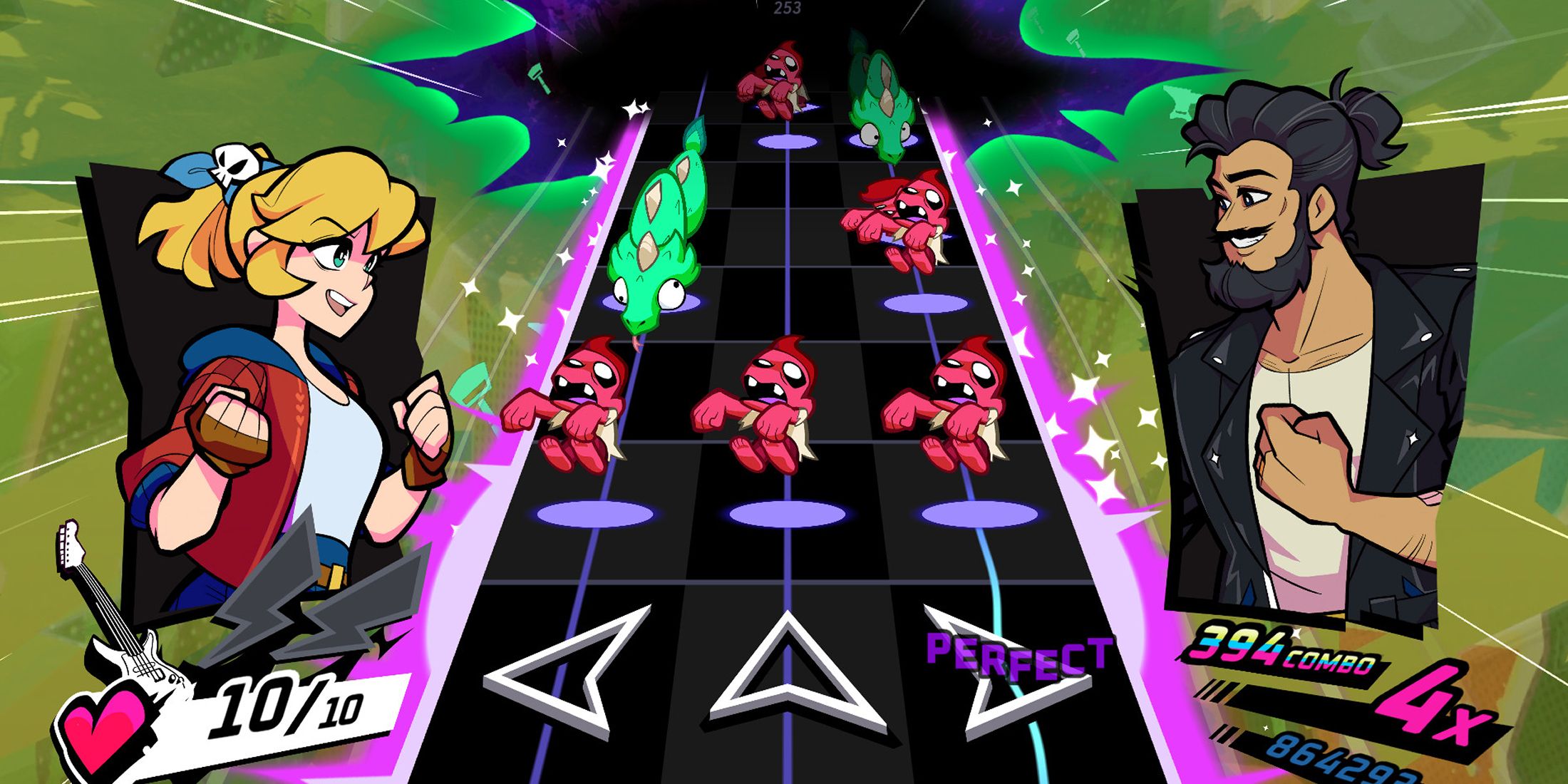 Наша главная цель — создать захватывающий опыт, в котором игра ощущается синхронно с музыкой. Это то, что мы постоянно оцениваем: «Кажется ли, что вы действительно играете музыку?» Кроме того, мы гарантируем, что позиции монстров музыкально согласованы. Для иллюстрации, если монстры имитируют соло-гитару, удар по ним должен производить звук, соответствующий этому инструменту. Когда мы хотим сменить инструмент, мы создаем значительный, впечатляющий переход. Мы даже можем ввести нового монстра, чтобы обозначить, что теперь он следует за барабанами, в то время как другой продолжает с гитарой.