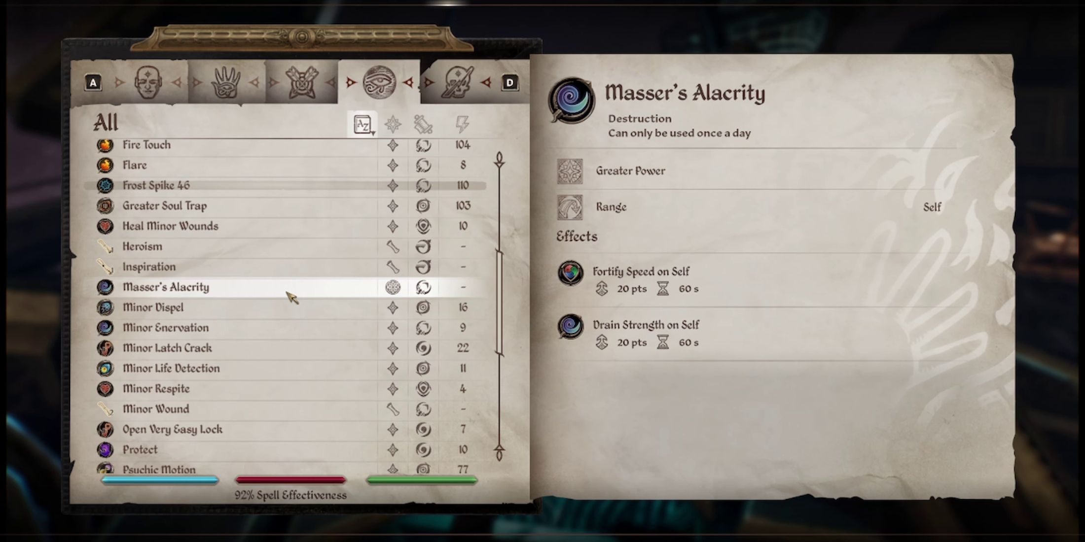 | Алкария Массера | Скорость +20 | Сила -20 |