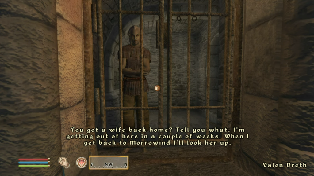 В своем приключении с Oblivion Remastered я просыпаюсь в стенах тюрьмы. Взглянув на соседнюю камеру, я встречаю взгляд Вален Дрета — человека, чьи слова заставят меня содрогнуться от боли. Итак, готовьтесь к самым острым оскорблениям, которые вы когда-либо слышали!
