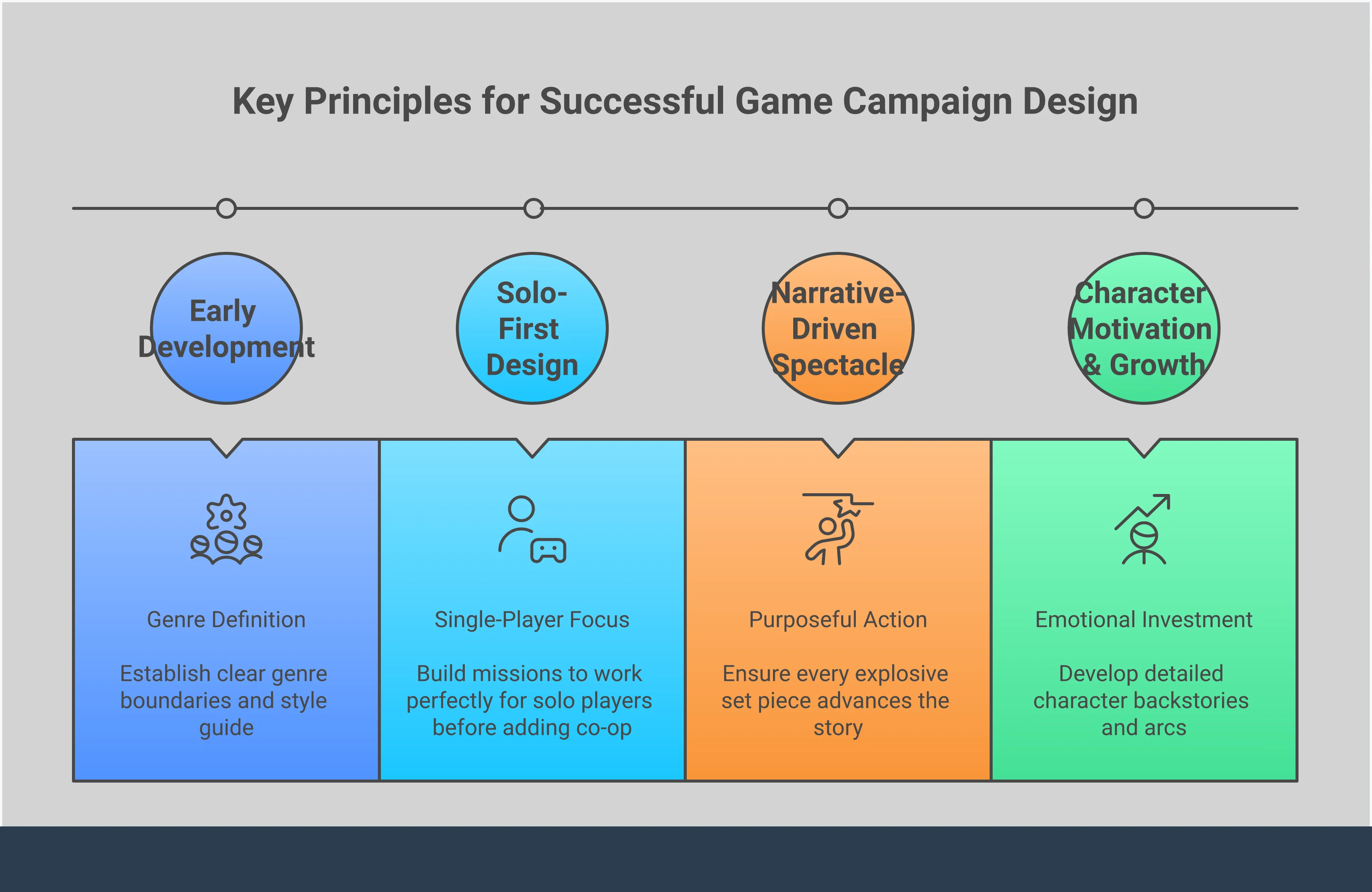 • Не приносите в жертву одиночную кампанию ради кооператива: Разработка миссий для четырех игроков без предоставления ИИ-компаньонов для одиночных игроков создает пустой и разочаровывающий опыт. Отличная кампания должна ощущаться полной сама по себе, а не так, будто приоритет был отдан функции, а не основному игроку.