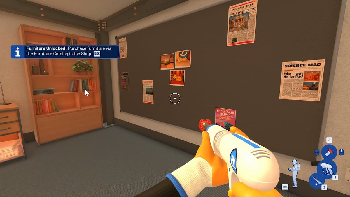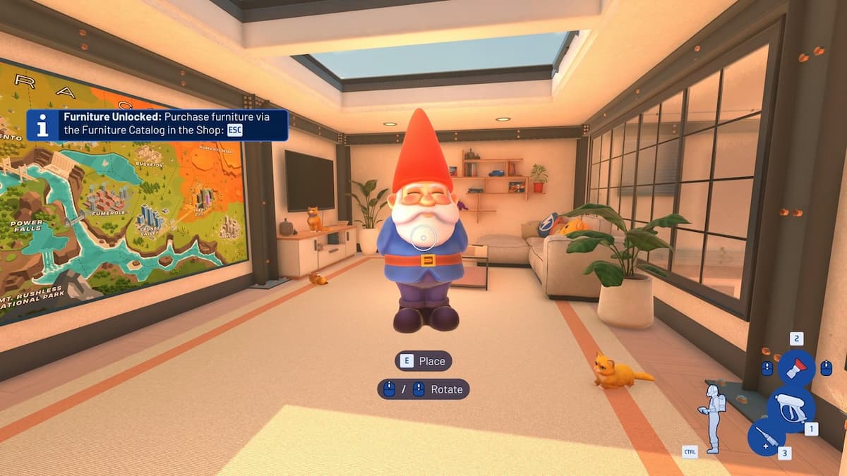 - После покупки нажмите Tab и нажмите на предмет мебели.