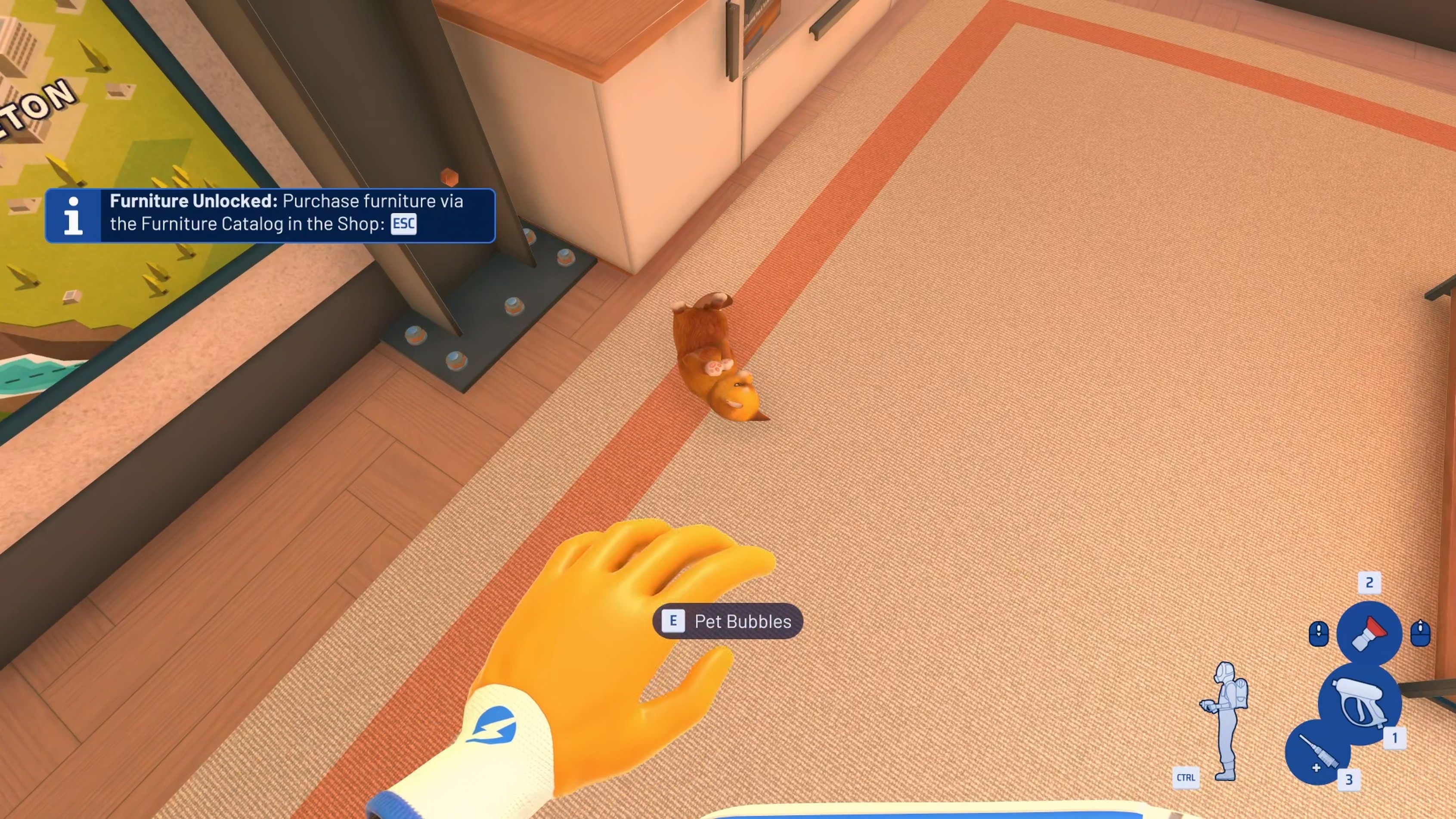 - Помой предмет мебели, и он будет готов к размещению в основной зоне вашей Домашней Базы.