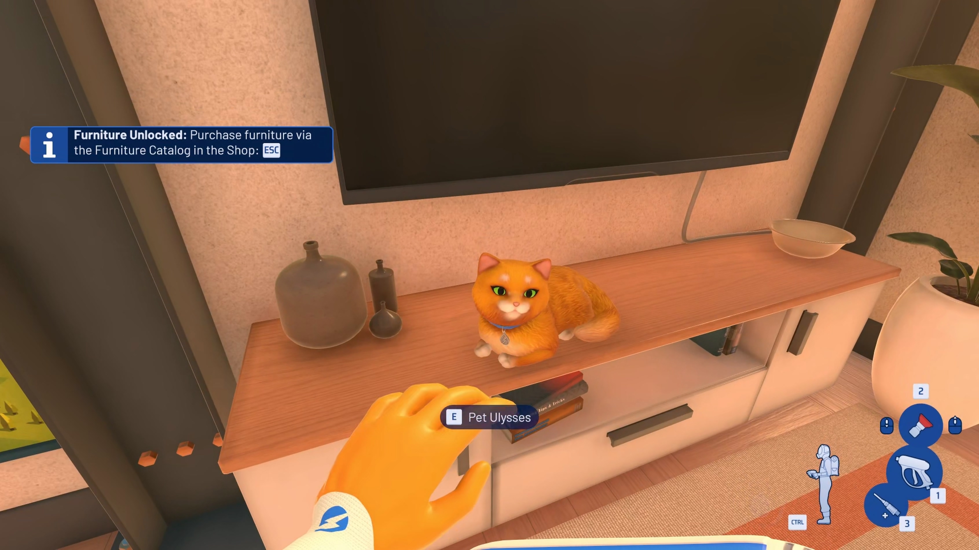 Вернувшись на Базу, обязательно погладьте всех трех кошек – Улисса, Бабблз и Сквика. Вы найдете их отдыхающими в офисе наверху, где вы начинаете каждый раз, когда выбираете «Вернуться на Базу».