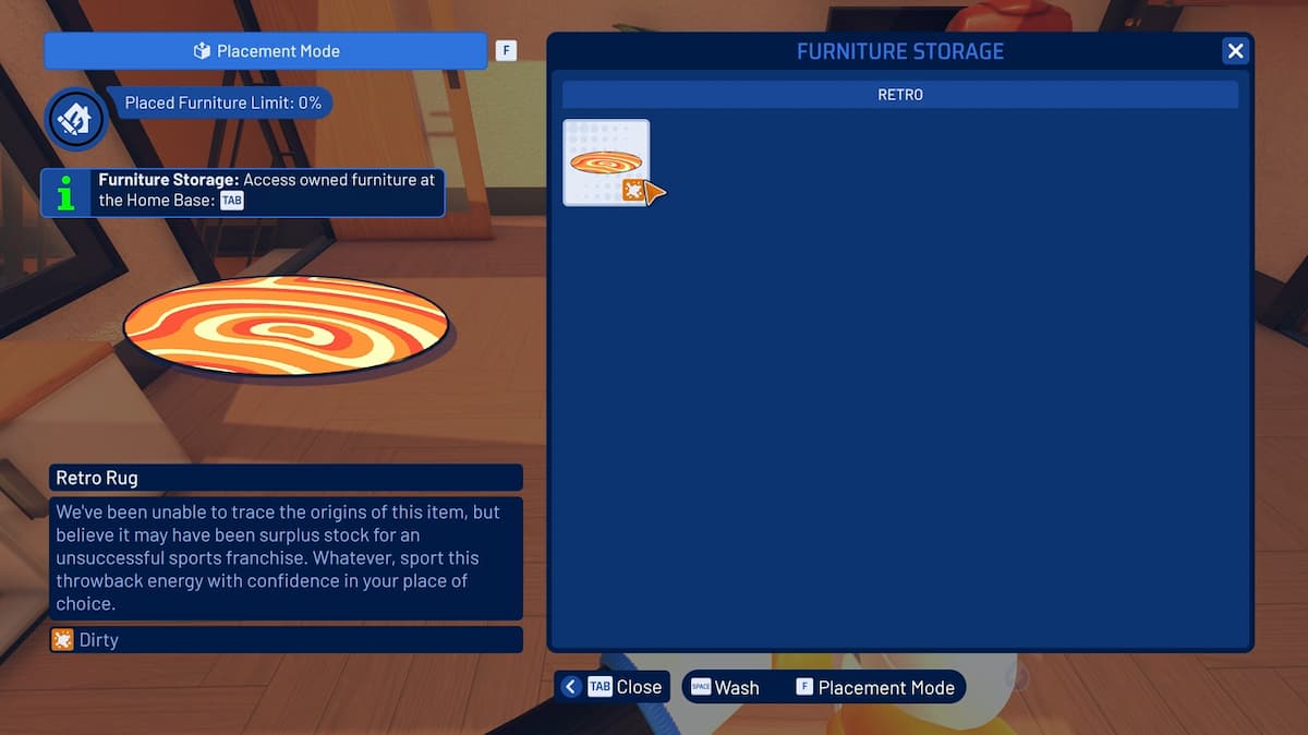 Чтобы получить это достижение, вам нужно купить предмет мебели, забрать его из хранилища, почистить и затем разместить его в любом месте вашей Домашней Базы.