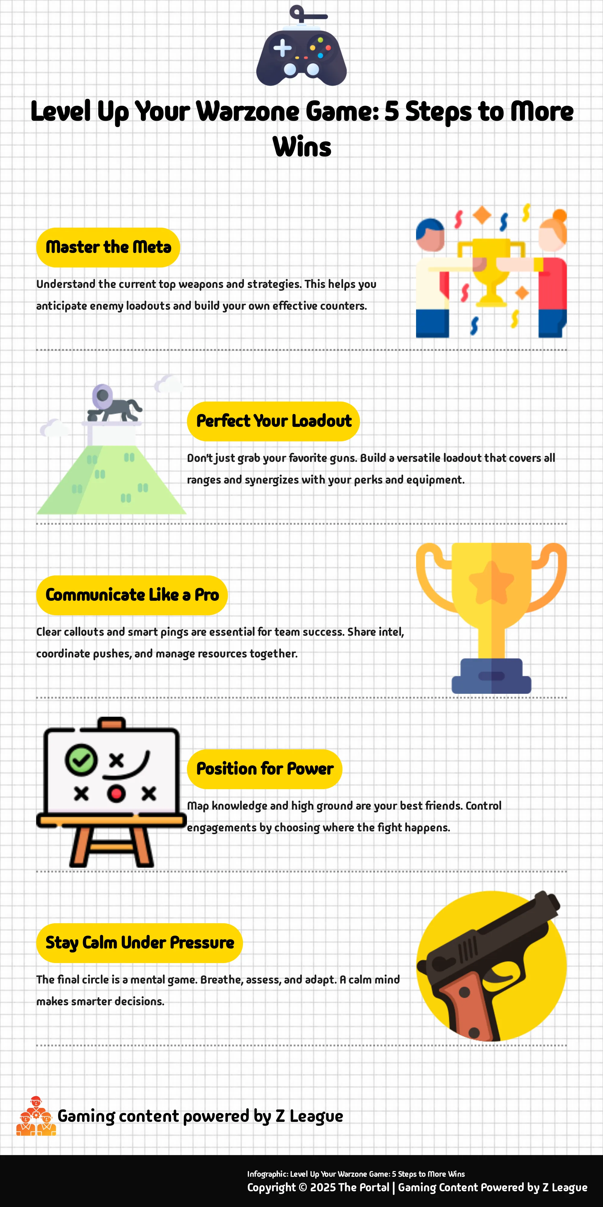 В Warzone ваши личные навыки и экипировка могут только частично обеспечить успех. Победы зависят от сильной командной работы, основанной на четкой коммуникации. Группа, которая эффективно общается через разговоры, пинги и синхронизированные движения, может превзойти молчаливое и неорганизованное сопротивление, даже если отдельные ее участники более квалифицированны. Рассматривайте коммуникацию как средство усиления общей эффективности вашей команды. Когда все понимают друг друга, вы сможете быстрее реагировать, разумно делиться ресурсами и реализовывать стратегии, которые иначе были бы недоступны. Не стоит просто болтать много; важно говорить тактично.