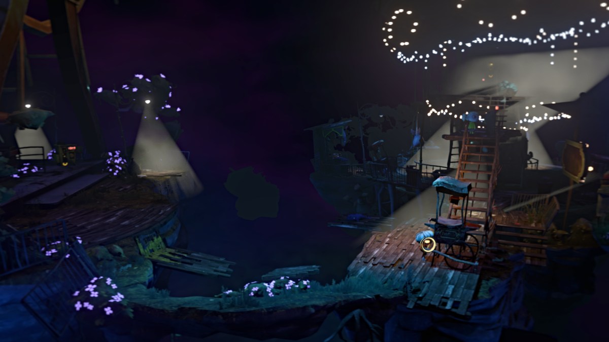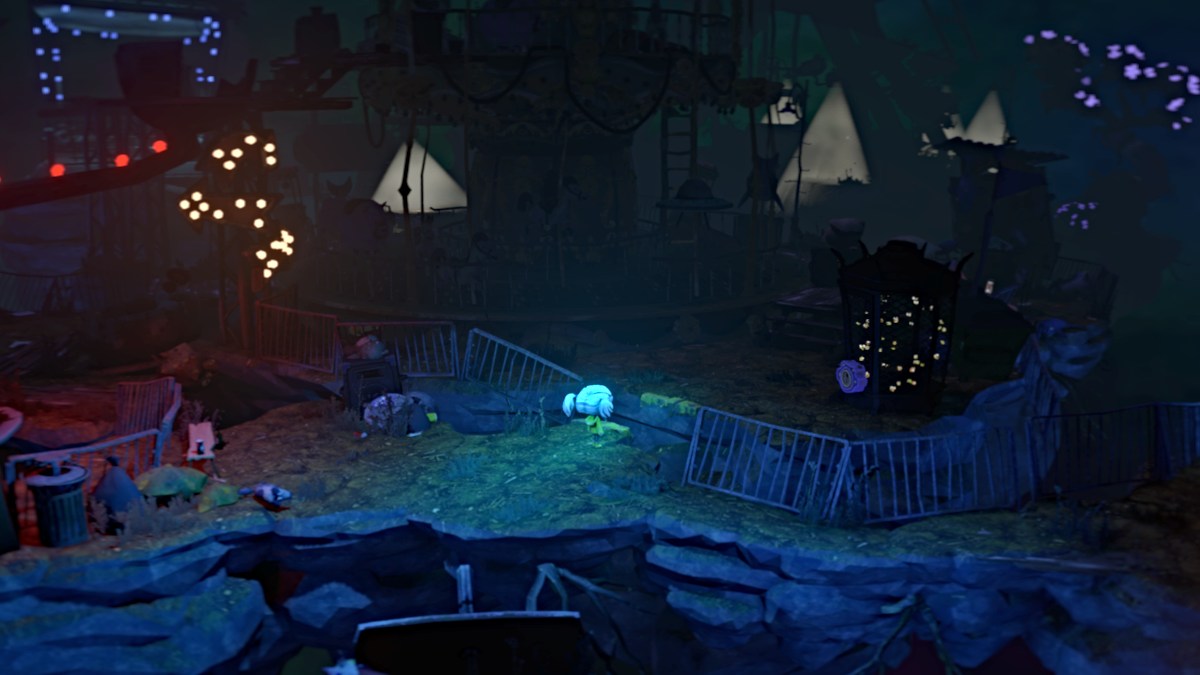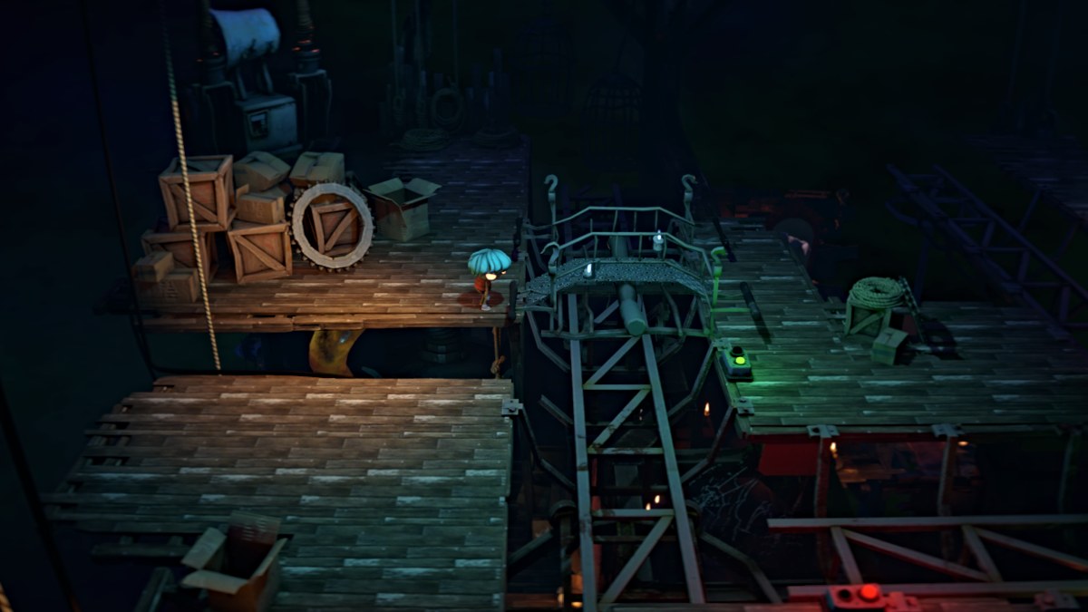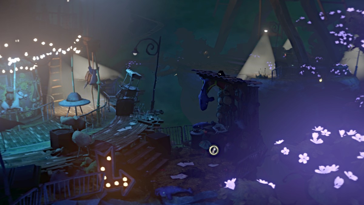 Открой клетку со светлячками ключом – это оживит весь карнавал! Как только они будут на свободе, ты сможешь добраться до рычага, который запускает карусель, но тебе понадобится Мрачный, чтобы помочь в этом.