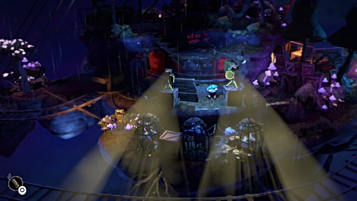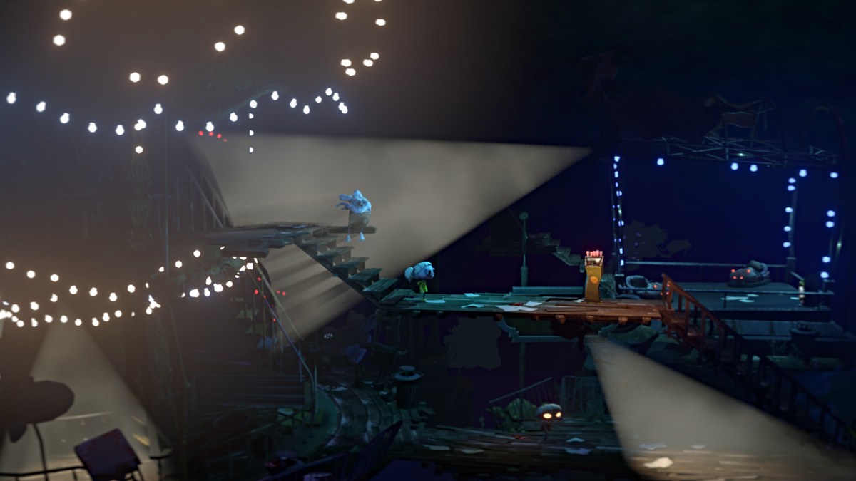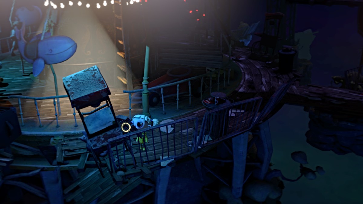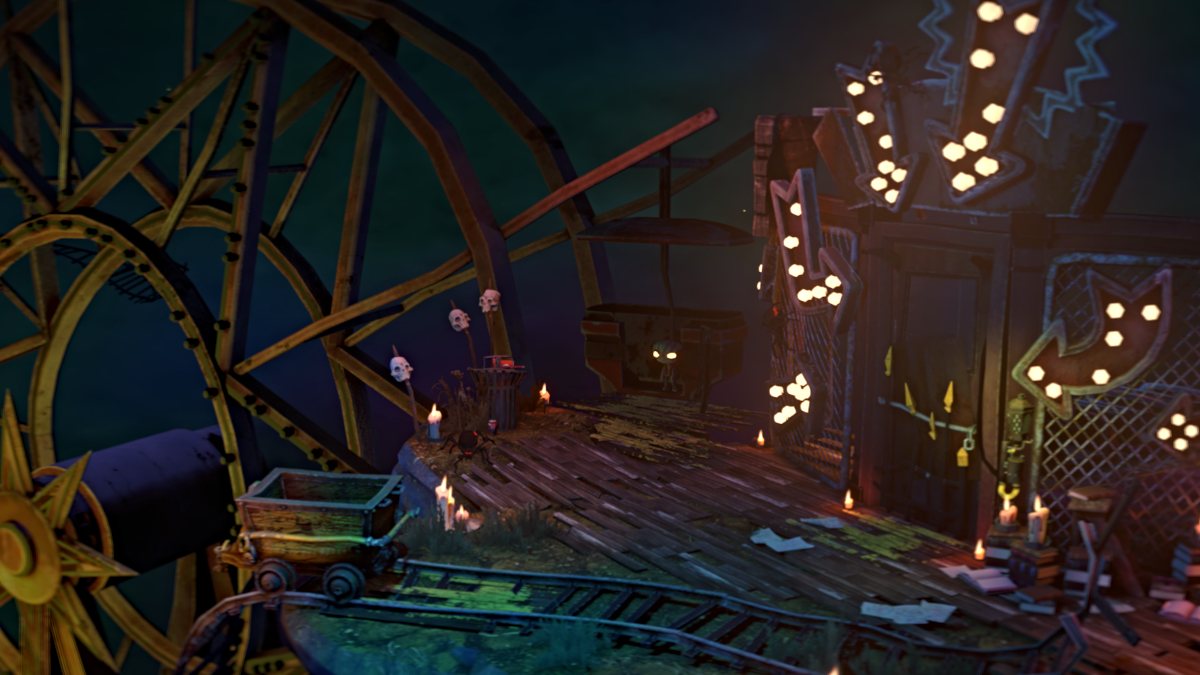 Открой клетку со светлячками ключом – это оживит весь карнавал! Как только они будут на свободе, ты сможешь добраться до рычага, который запускает карусель, но тебе понадобится Мрачный, чтобы помочь в этом.