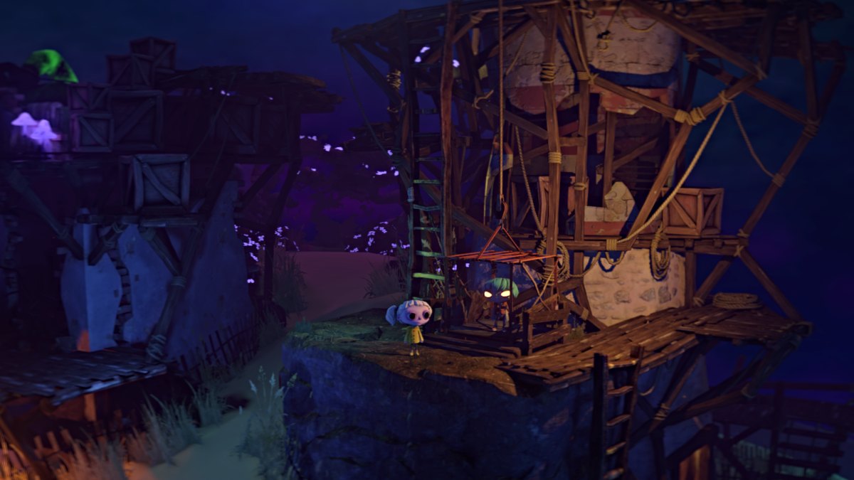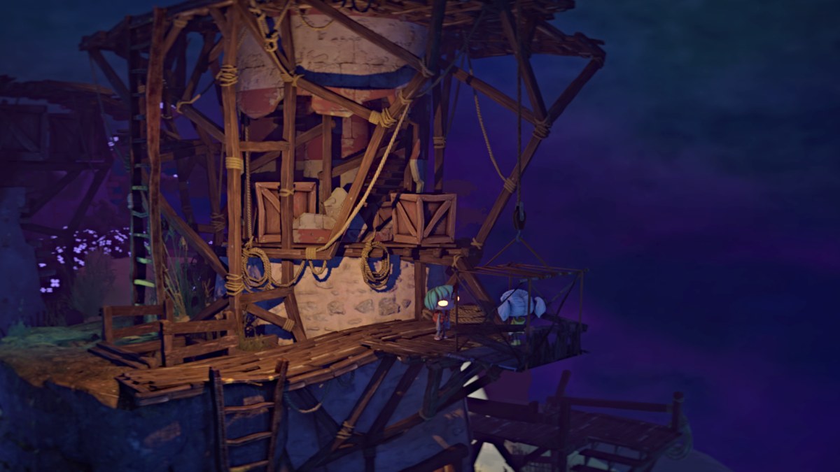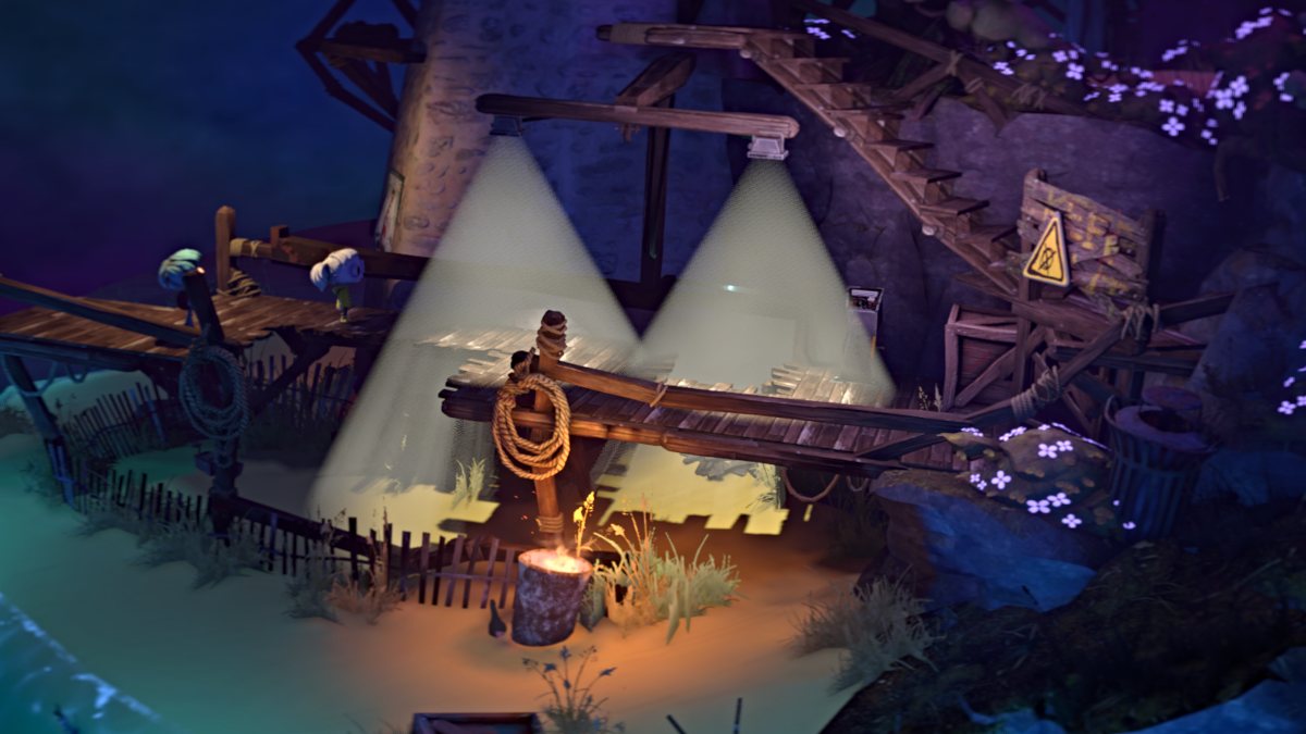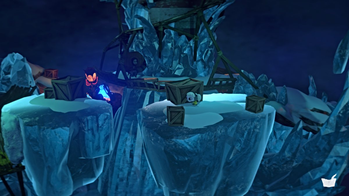 Теперь выберите Нену и нажмите кнопку, чтобы повернуть секции моста. После этого переключитесь на Глуми и продвиньте мост еще дальше вправо. Наконец, вернитесь к Нене и нажмите кнопку еще раз, чтобы мост повернулся боком.