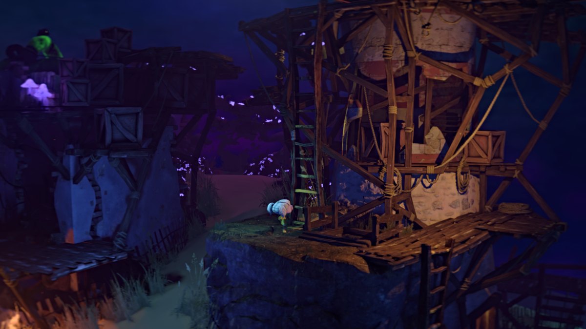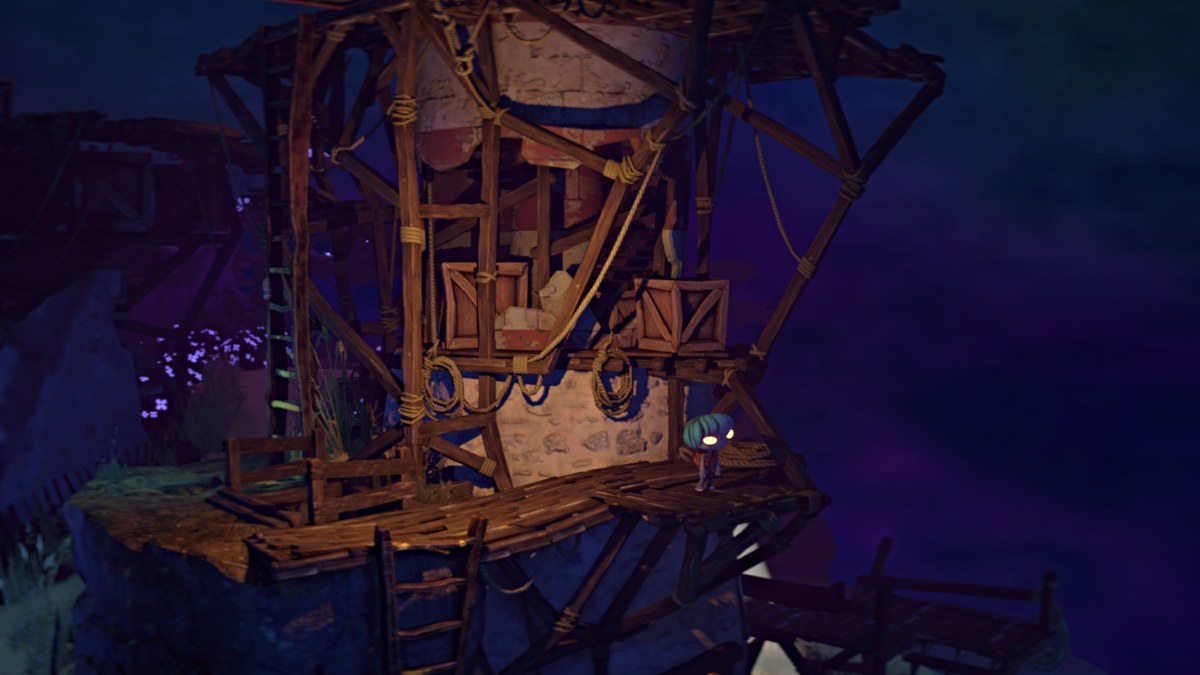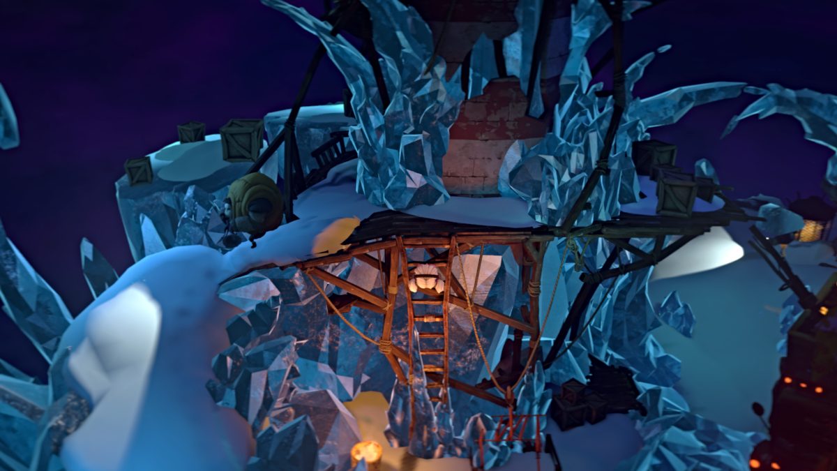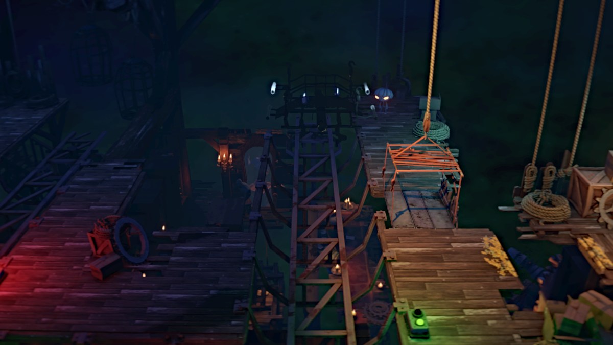 Теперь выберите Нену и нажмите кнопку, чтобы повернуть секции моста. После этого переключитесь на Глуми и продвиньте мост еще дальше вправо. Наконец, вернитесь к Нене и нажмите кнопку еще раз, чтобы мост повернулся боком.