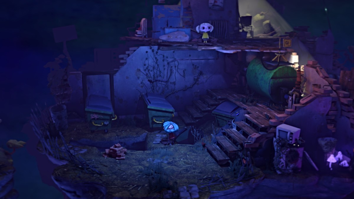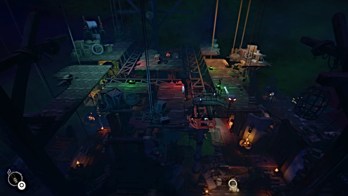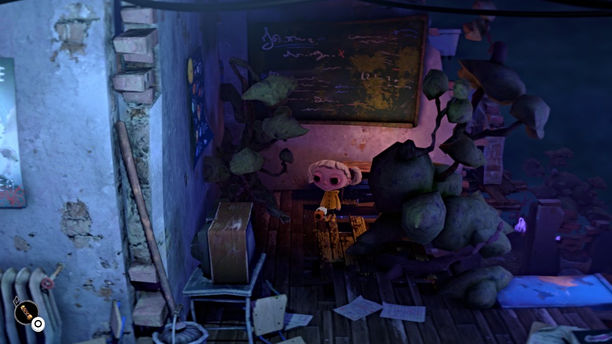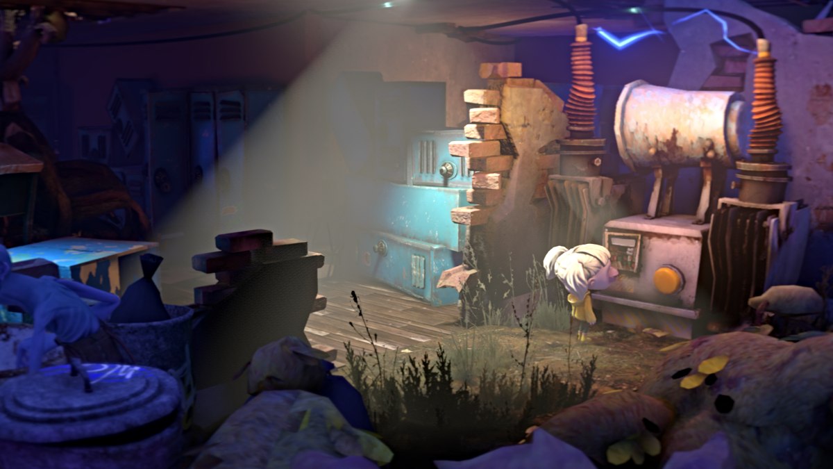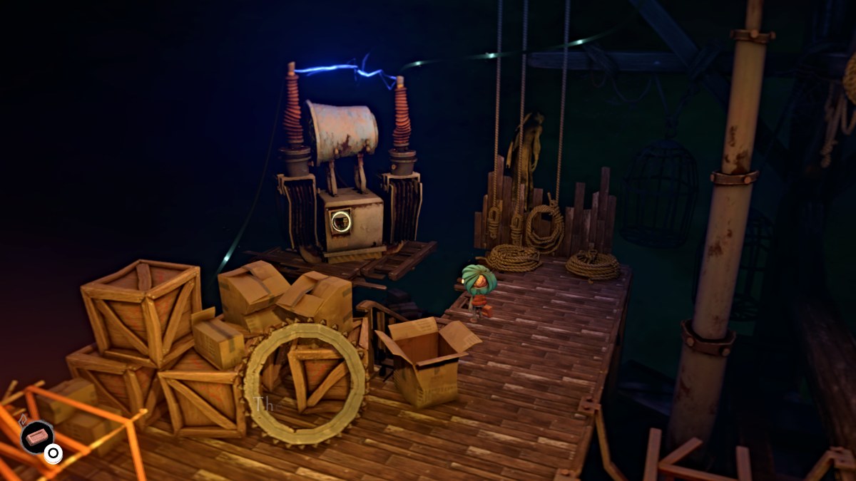 Теперь управляйте Неной и направьте её вниз по лестнице прямо перед вами, мимо зомби, прячущегося от света. Перейдя тропу, нажмите кнопку на панели управления, которую вы видите впереди.