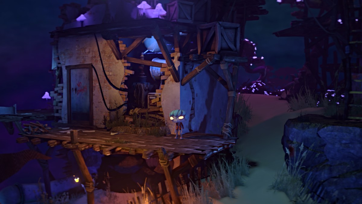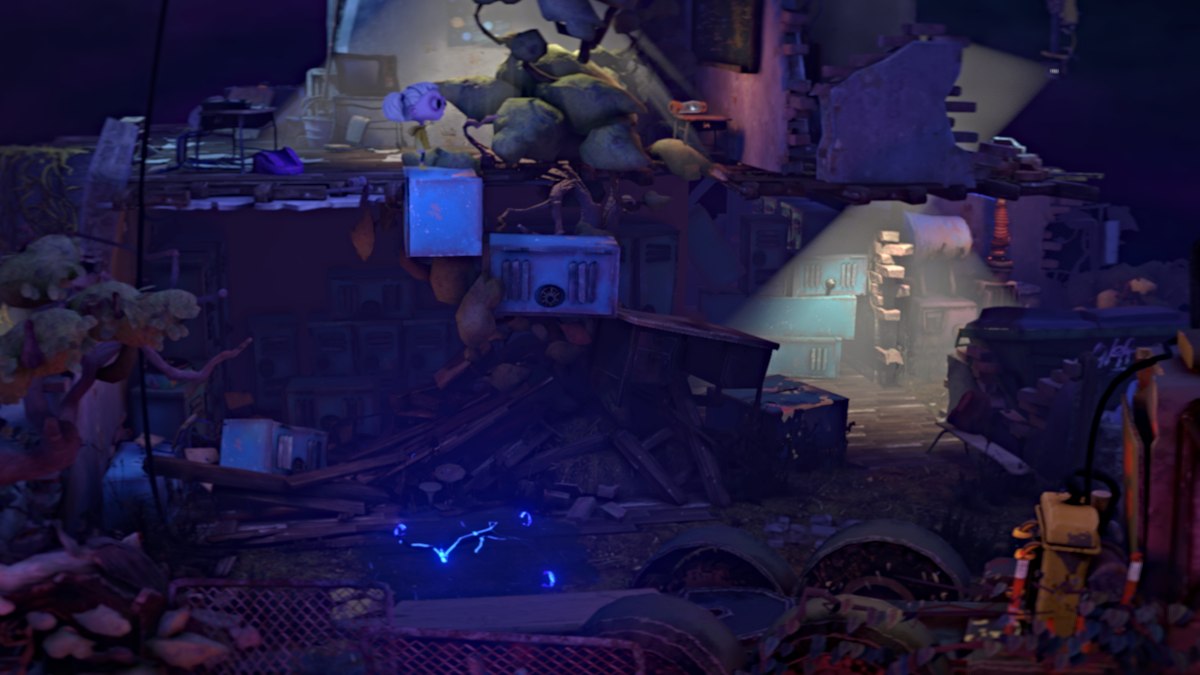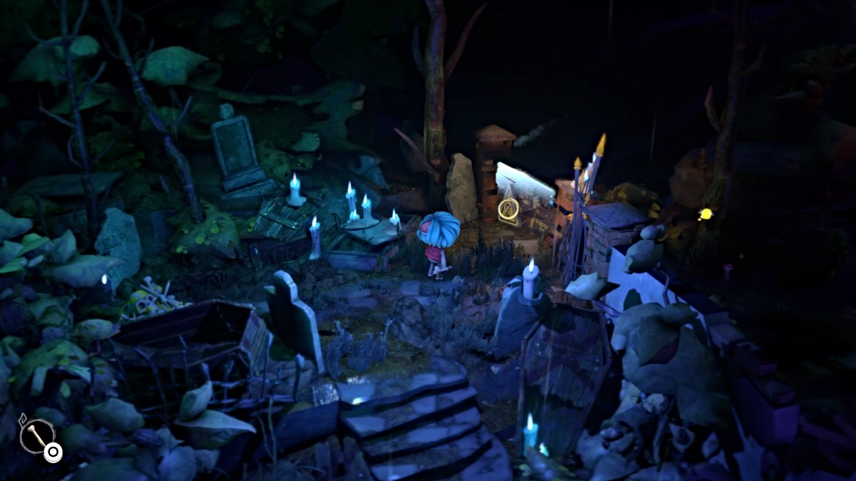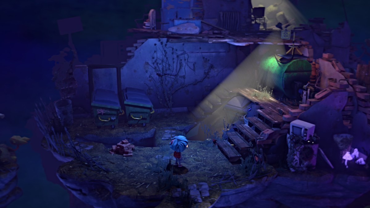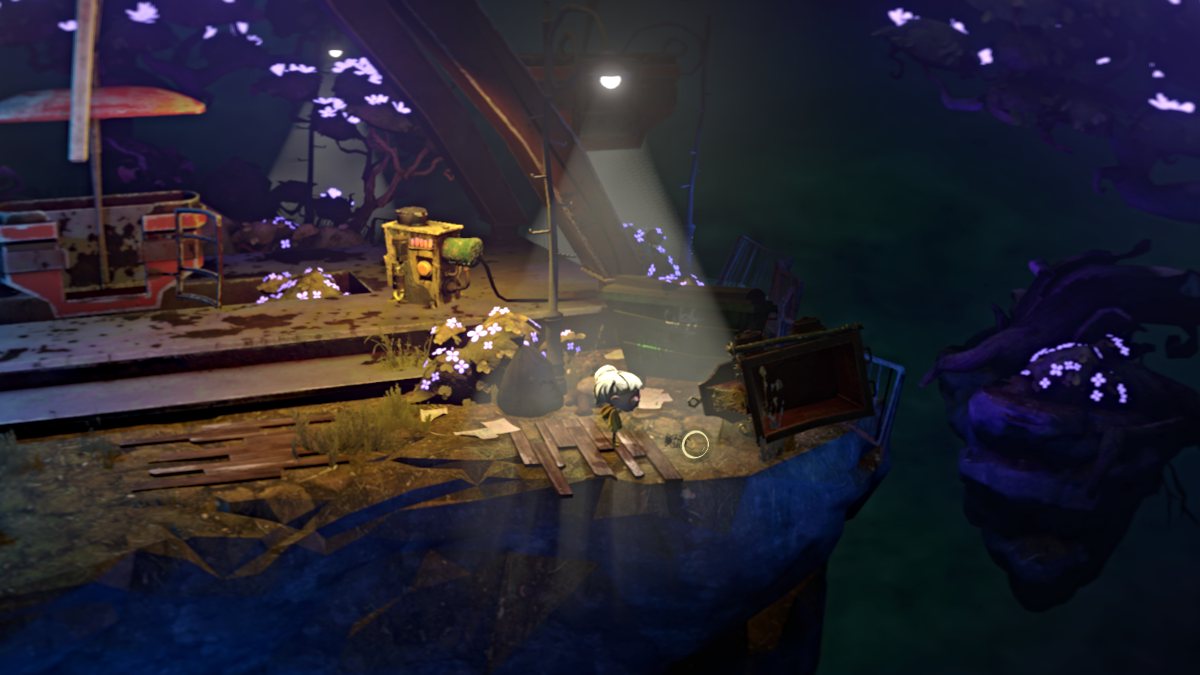 Теперь управляйте Неной и направьте её вниз по лестнице прямо перед вами, мимо зомби, прячущегося от света. Перейдя тропу, нажмите кнопку на панели управления, которую вы видите впереди.