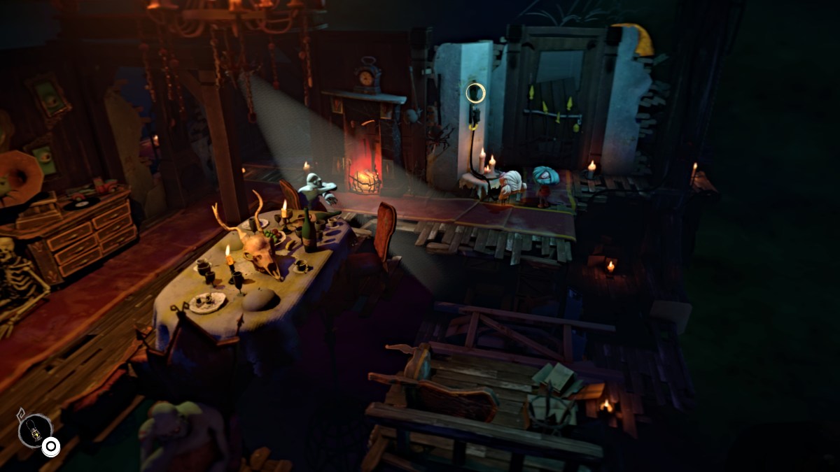 Нажмите на него, чтобы выключить свет, освещающий зомби. Это привлечет внимание дяди Нены, поэтому быстро вернитесь в столовую, пока он отвлечен.