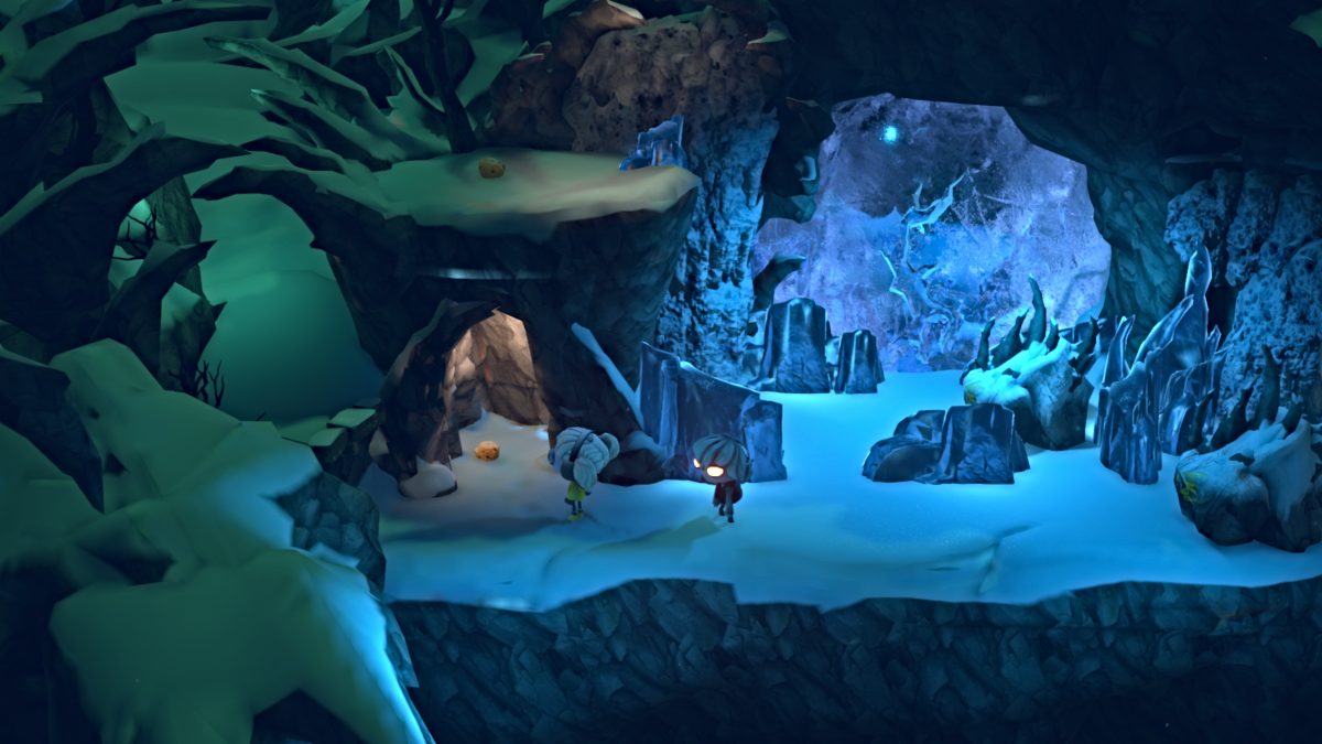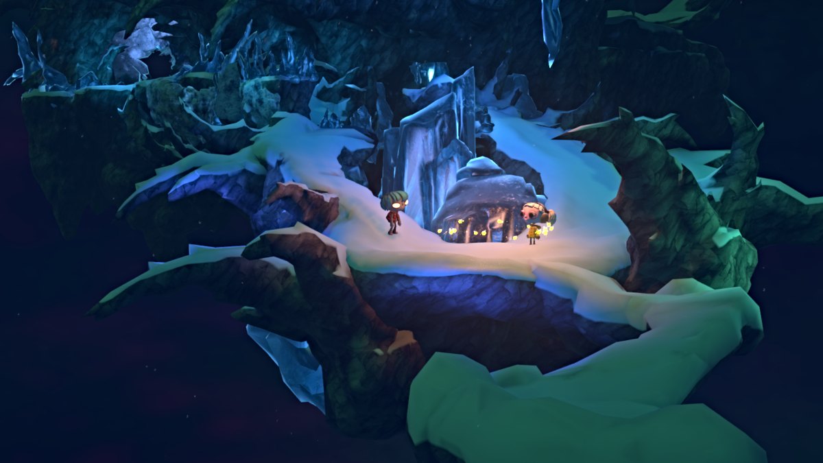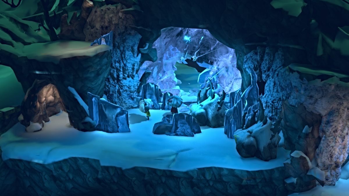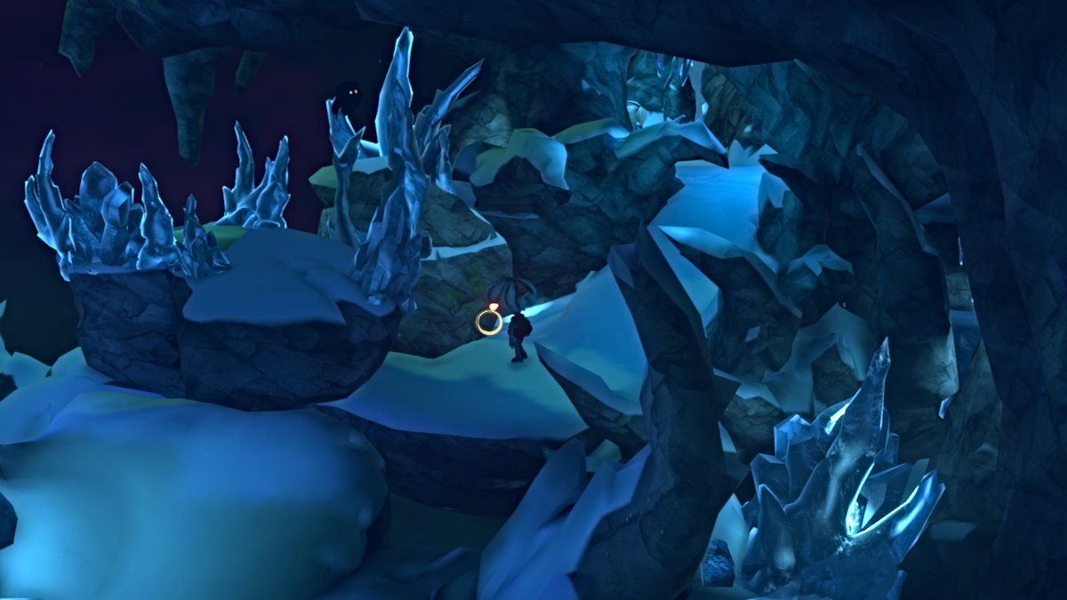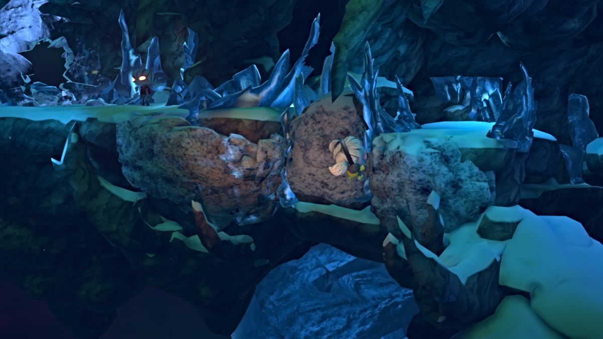 Хорошо, я перевёл их обоих, а теперь мне нужно провести Мрачного через скрытый проход за сосульками. Как только он пройдёт, там будет камень, который мне нужно толкнуть – до тех пор, пока он не откроет путь, по которому Нена сможет подняться!