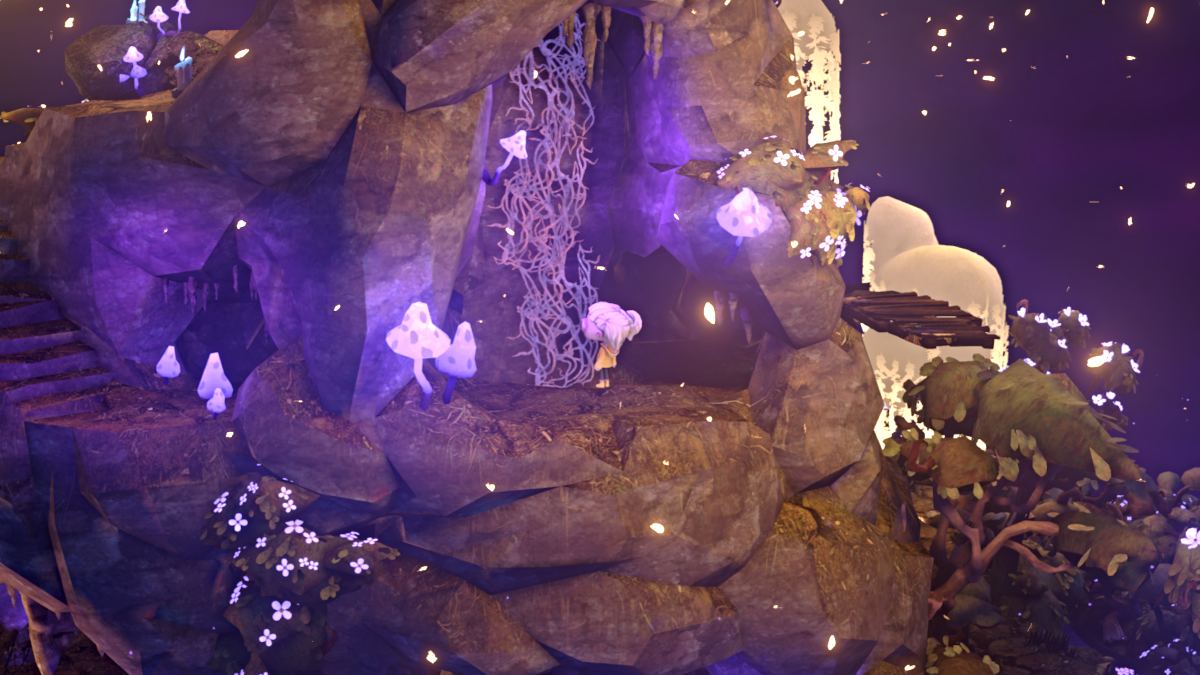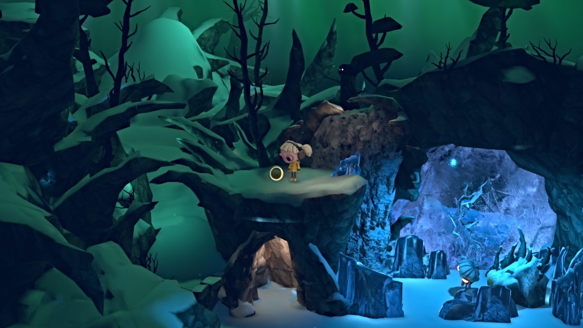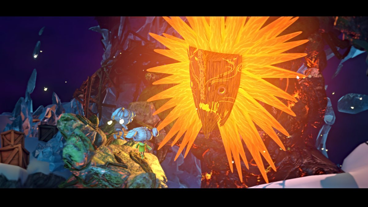 Пусть Нена заберется по легкому склону слева от нее, на платформу, нависающую над углублением. Там она найдет еще один желтый камень. Как только она его получит, ей следует спуститься вниз и отдать его Мрачному.