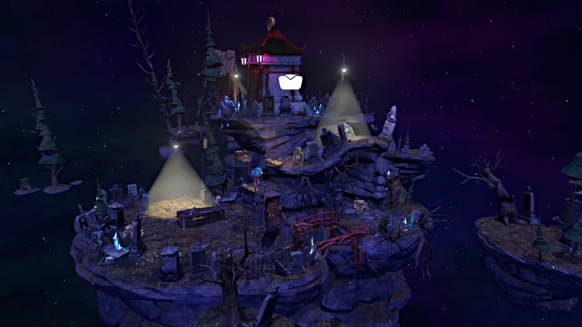 Начните с того, что пройдитесь по тропинке, пока она не закончится. Затем посмотрите по сторонам — вы увидите там еще один гроб. Откройте его за ручки, чтобы обнаружить скрытый проход, и пройдите через него.