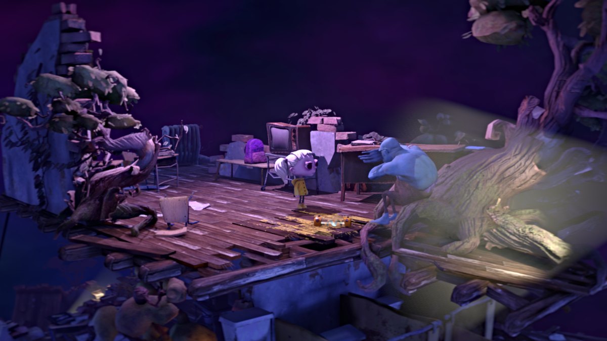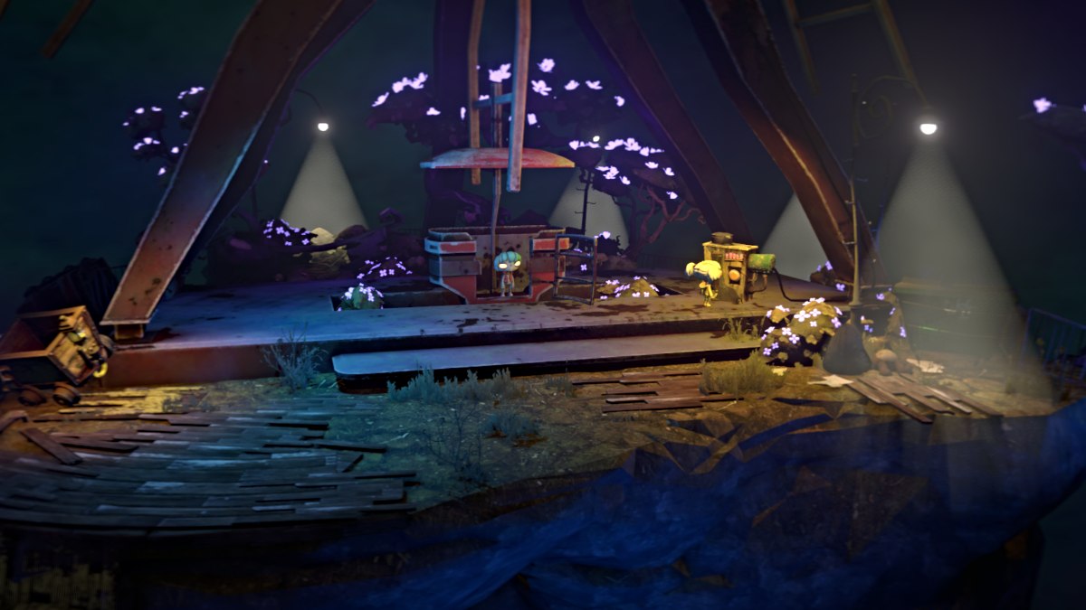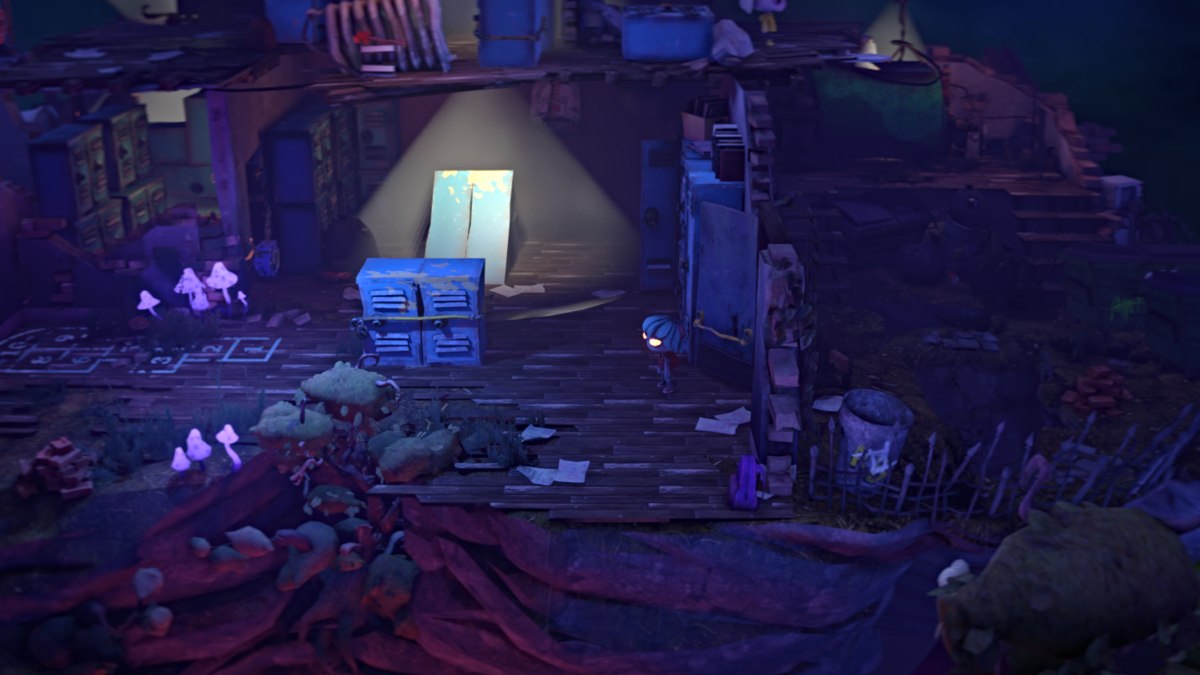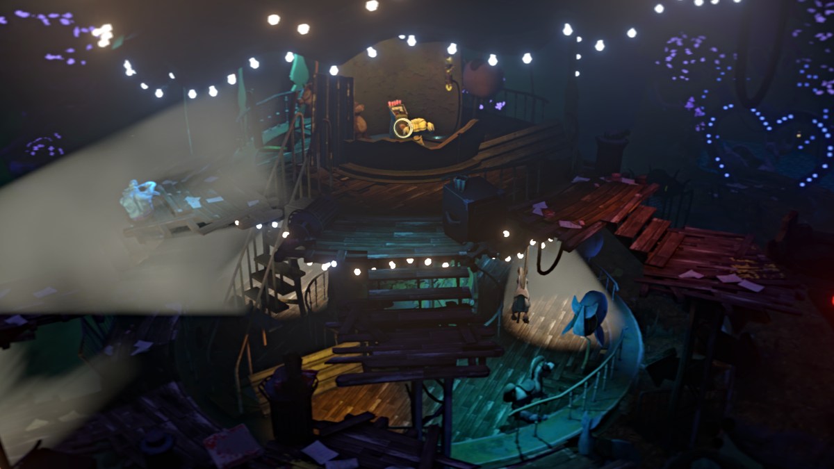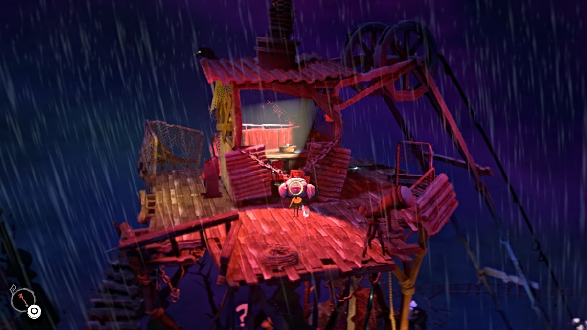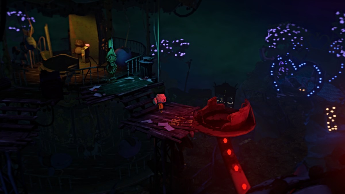 Поднимитесь по лестнице на второй уровень. Затем найдите способ добраться до чашки-сиденья на аттракционе-чайнике. Когда Нена сядет в него, сиденье опустится на землю. Теперь переключитесь на управление Мрачным и подбегите к месту, где находится Нена.