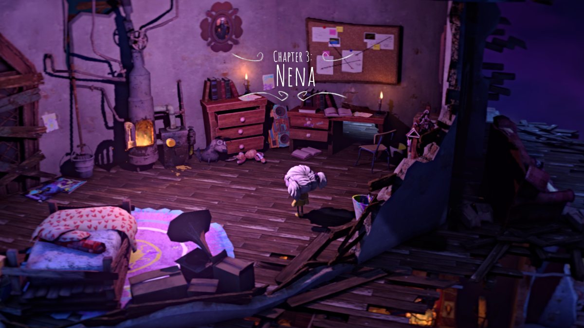 В главе 3 вы встретите Нену, юную девушку, пытающуюся понять, почему исчезло Солнце. Получив управление персонажем, запомните печь в комнате. А пока направляйтесь к столу Нены и проползите под ним.