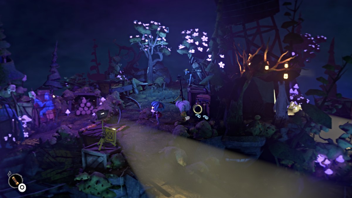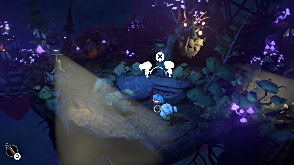Проведите Нену вниз по склону к области со светлячками, а затем переключите управление на Мрачного. Заставьте Мрачного следовать тем же путем вниз и встретиться с Неной. Это завершает главу.