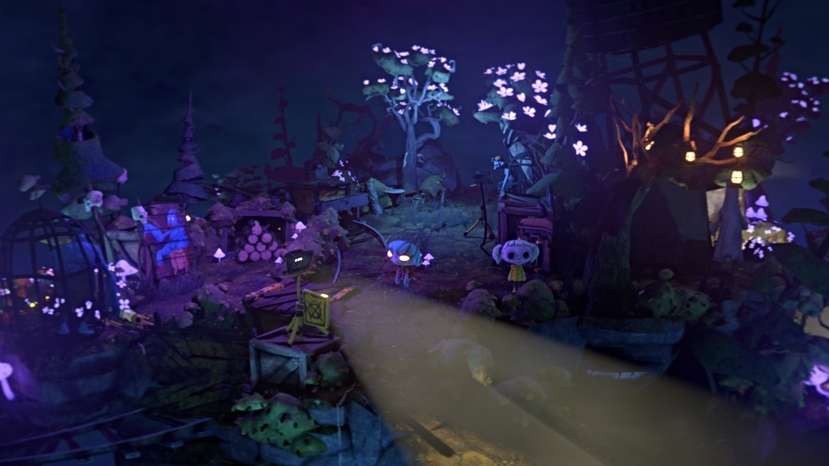 Кратковременно переключите управление на Мрачного и продвиньтесь вперед, так как его свет на мгновение погаснет. Затем отодвиньте аппарат для приготовления попкорна от лестницы, чтобы освободить путь для Нены.