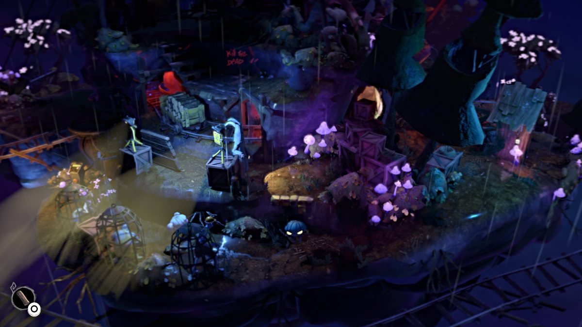 Как большой фанат, я был очень рад обнаружить режим диорамы! Он позволяет увидеть весь уровень сверху, почти как смотреть на миниатюрную диораму. Нужно просто нажать нужную кнопку, чтобы переключиться в этот режим, и это потрясающе – увидеть всё с высоты птичьего полёта!