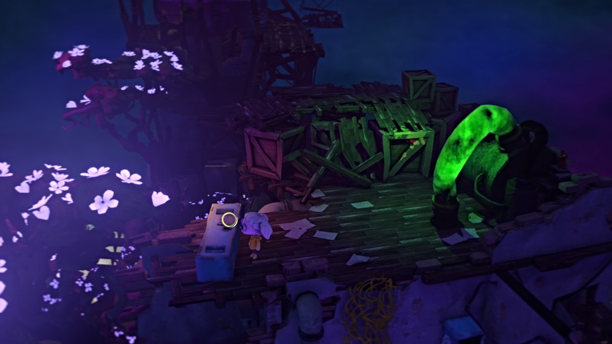 После спуска с колеса обозрения, подойдите к тележке, свисающей над краем слева. Сбросьте её, чтобы она упала, что высвободит фонарь в память о Нене.