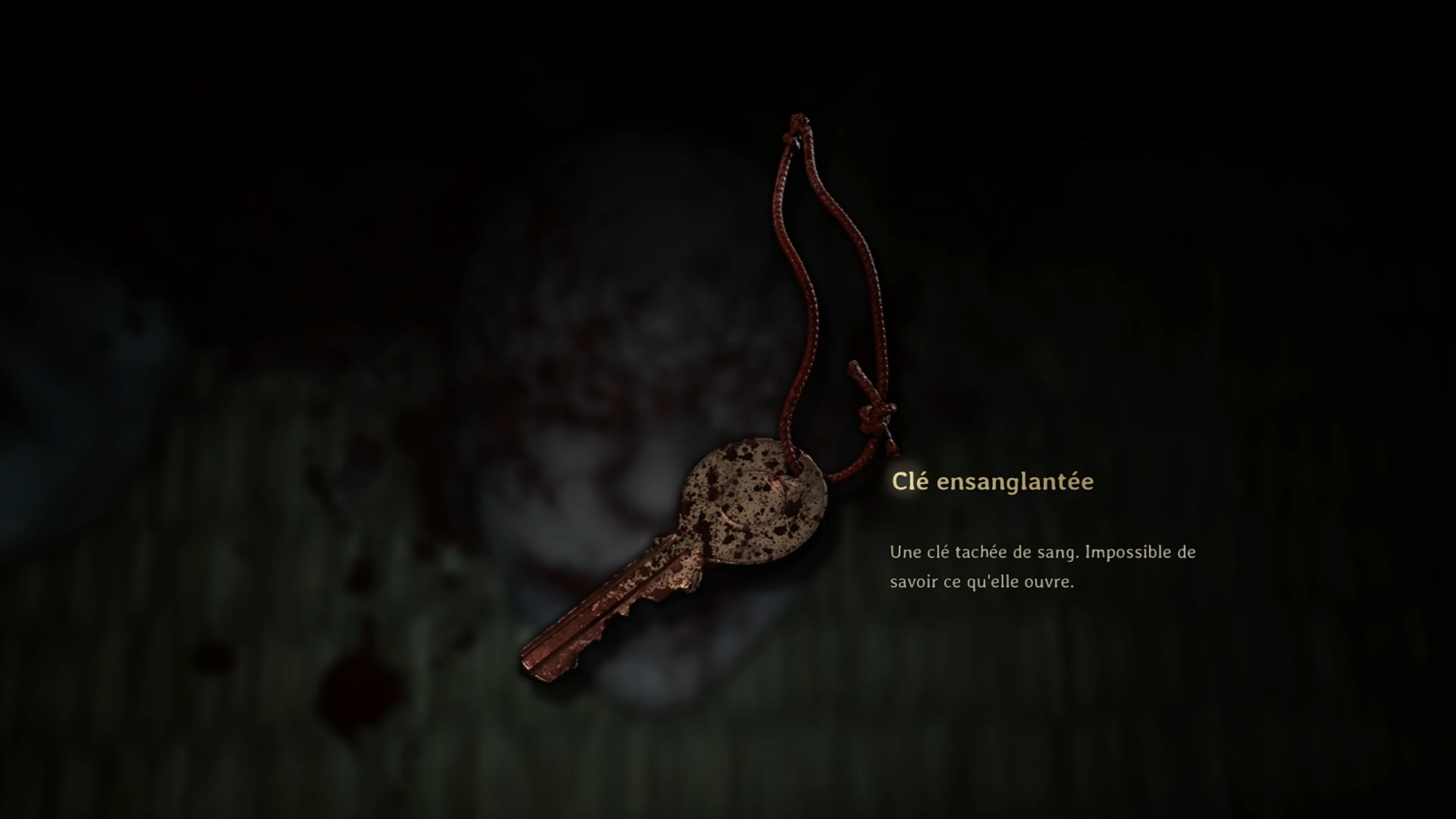 Ладно, я поднялся наверх по лестнице возле входа и последовал за всеми следами крови. Они привели меня к маске на полу, и когда я осмотрел её, я нашёл окровавленный ключ! Затем я вошёл в следующую комнату и взял ключ от задней двери. Эту дверь можно найти внизу, если вы хотите продолжить исследование. Но, честно говоря, я просто использовал окровавленный ключ, чтобы открыть дверь и выйти наружу, а затем спрыгнул с балкона. Это был довольно большой прыжок, но получилось!