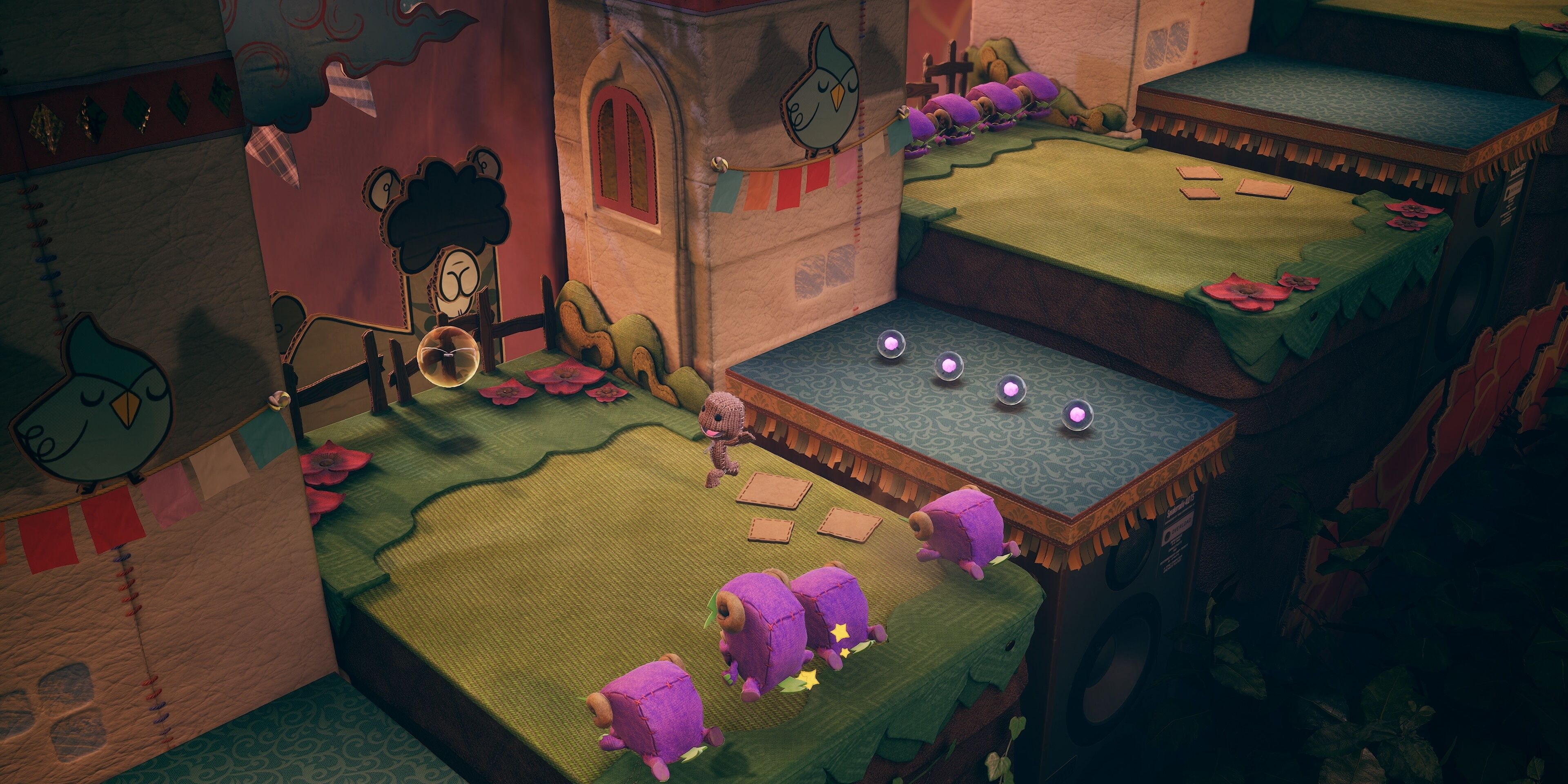 В отличие от оригинальной LittleBigPlanet, у Sackboy нет редактора уровней. Однако она предлагает кооператив на двоих-четверых игроков как локально, так и онлайн – чего вы не найдёте в Astro Bot. Многие уровни на самом деле требуют командной работы, поскольку головоломки и препятствия предназначены для решения с друзьями.