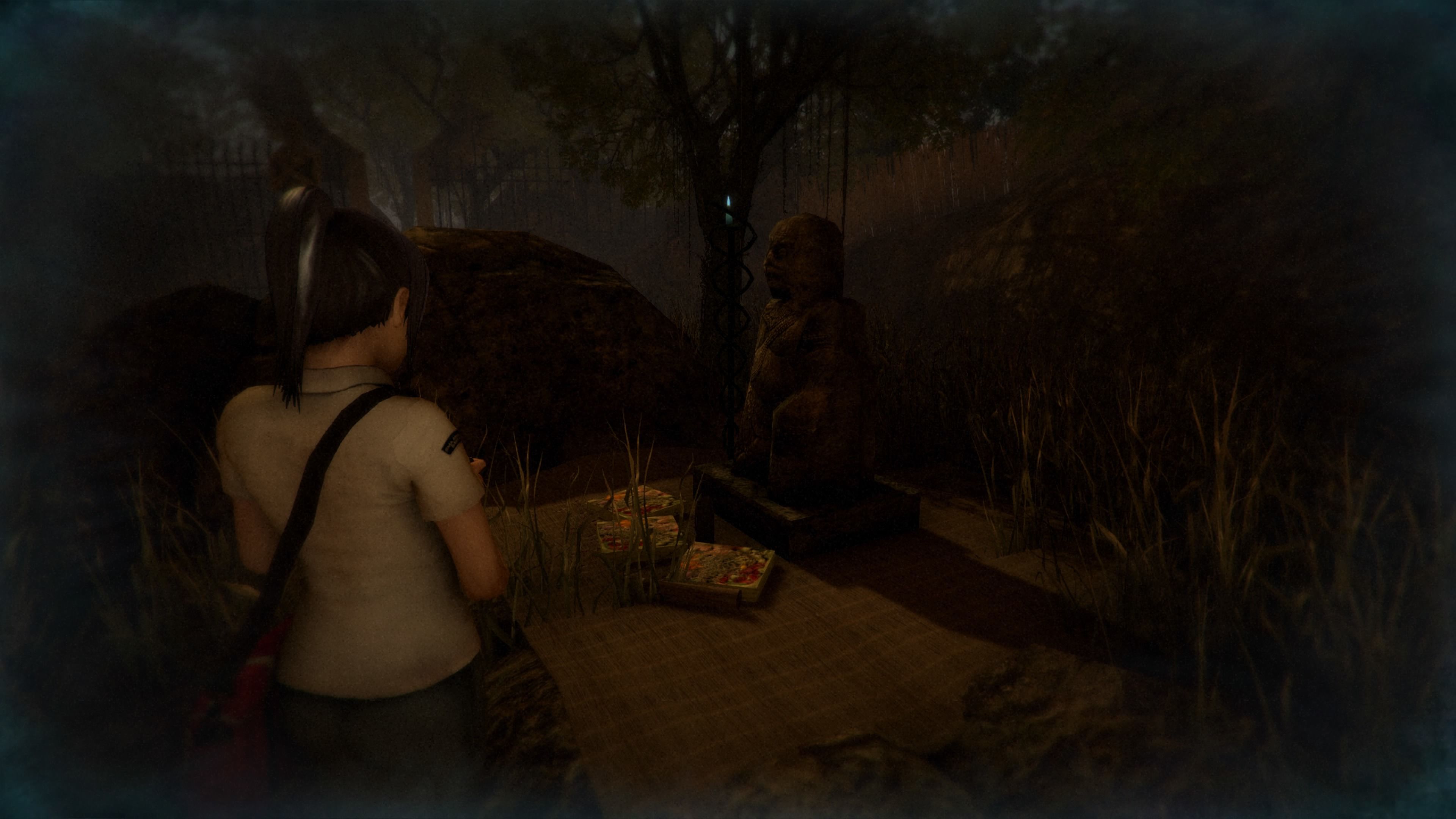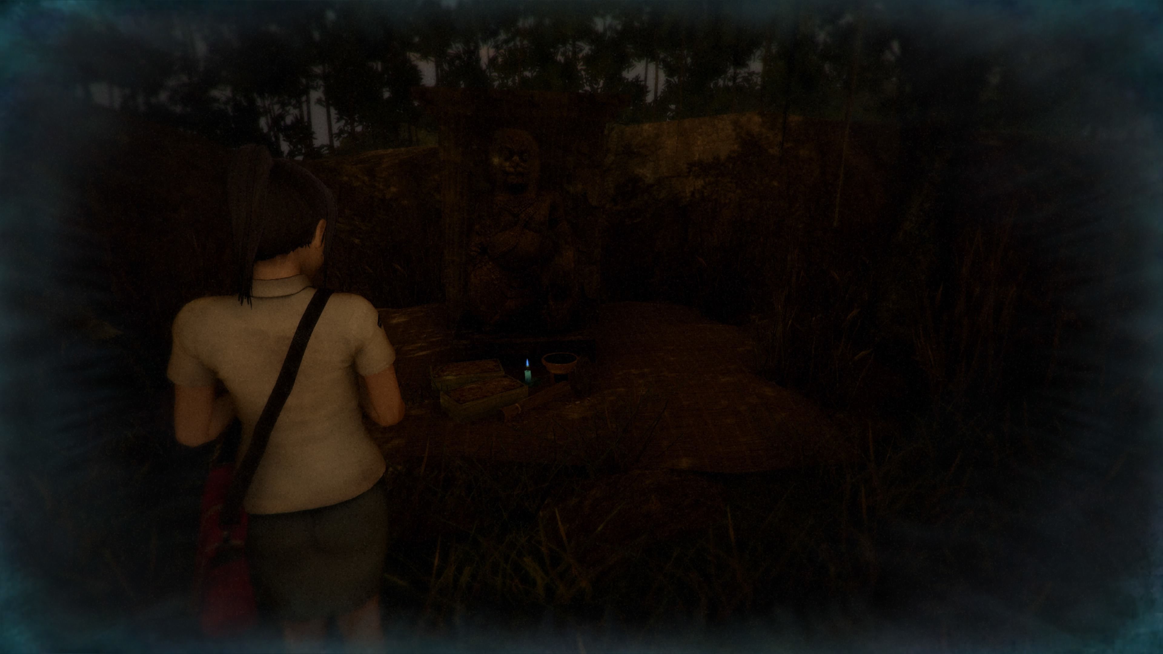 Теперь игрокам предлагается сосредоточиться на маленькой фигурке справа от них, где они обнаружат, что ближайшая свеча уже зажжена. Для любителей игр ужасов с главными героями-женщинами, если подойти к этой освещенной свече и сфотографировать ее зеркальной камерой, она затемнится и, в свою очередь, зажжет первую свечу в головоломке.
